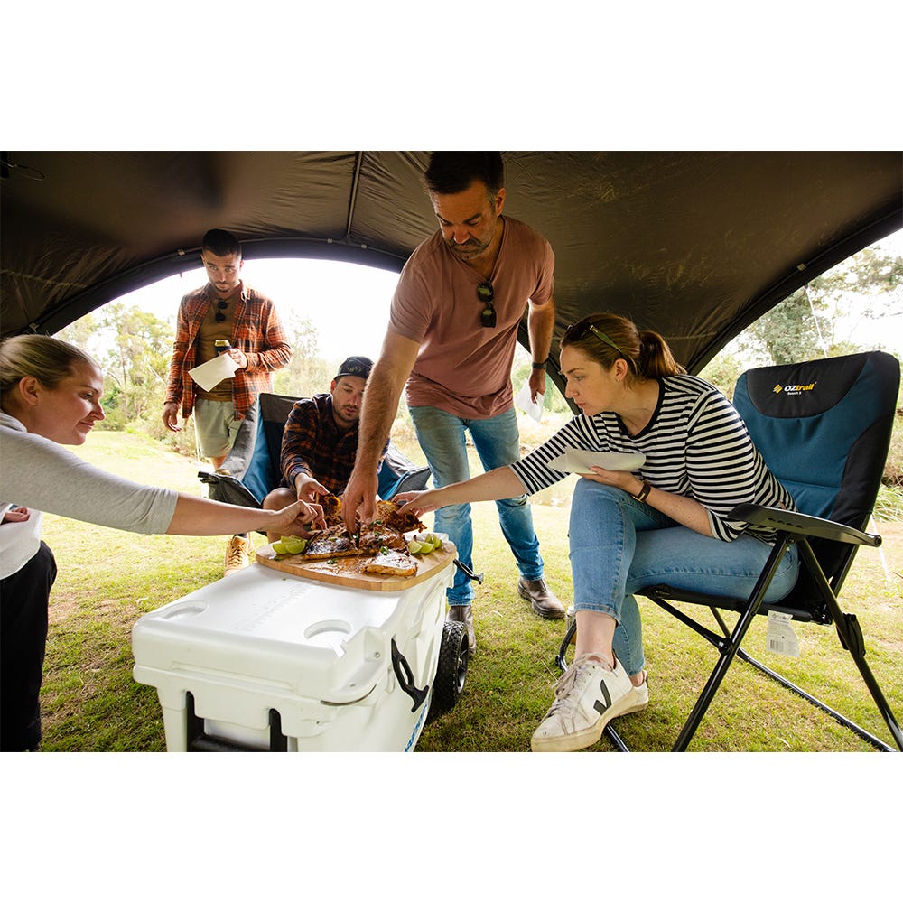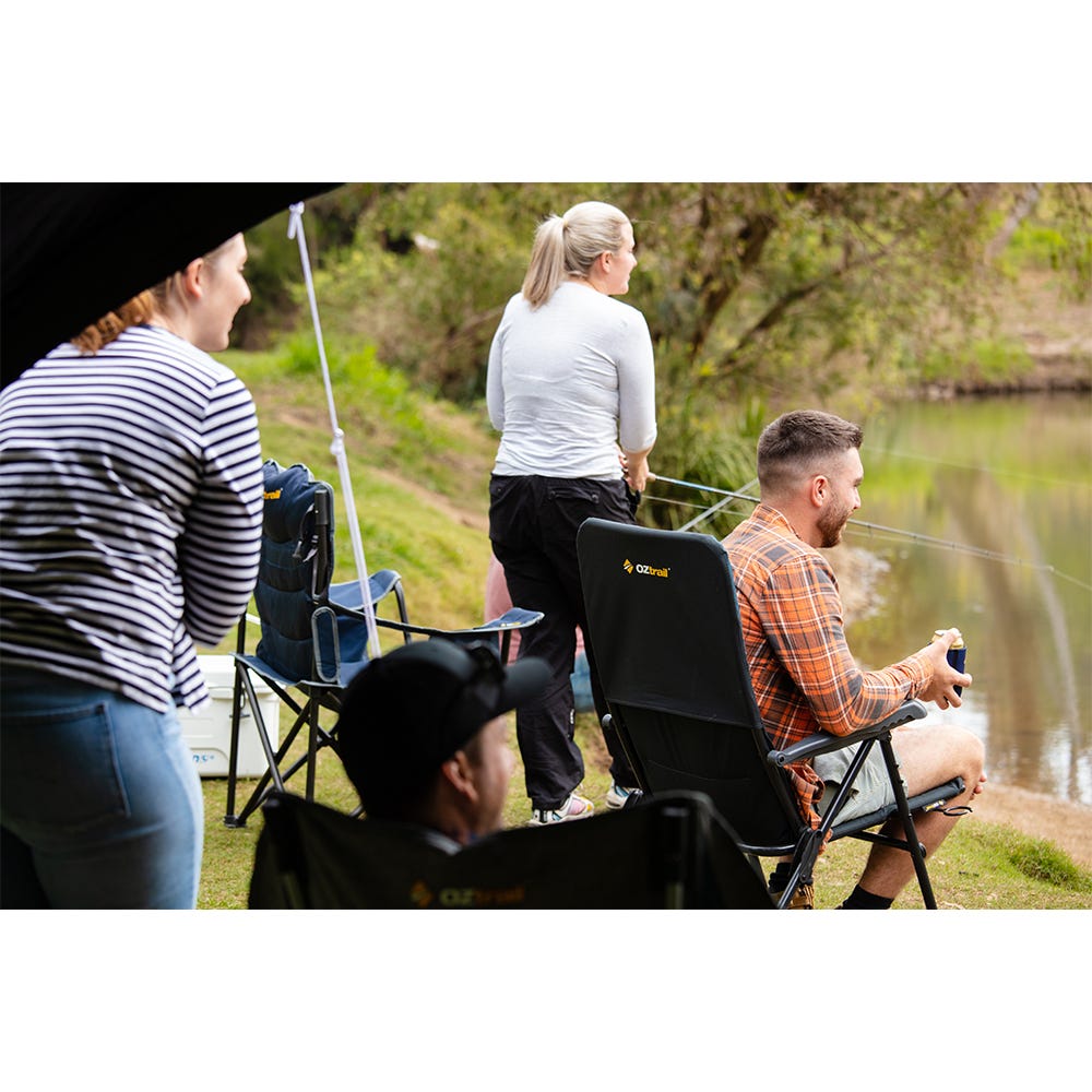 The Oztrail Resort 5 Position Arm Chair provides full padded comfort in a versatile recliner chair. Featuring a 5 position recliner style design, a strong 22mm/19mm steel tube frame with powder coated finish, 600D polyester fabric, comfortable padded seat and backrest, moulded, supportive armrests and a handy drink holder, this chair combines practicality with the luxury comfort of a recliner. With a strong weight capacity of 150kg.