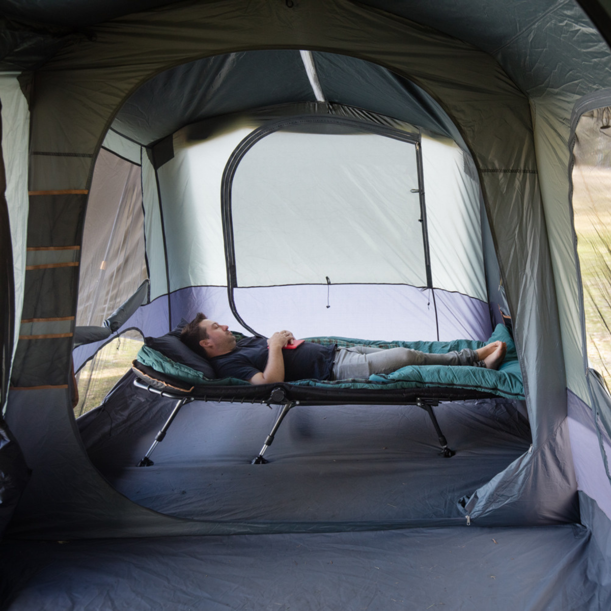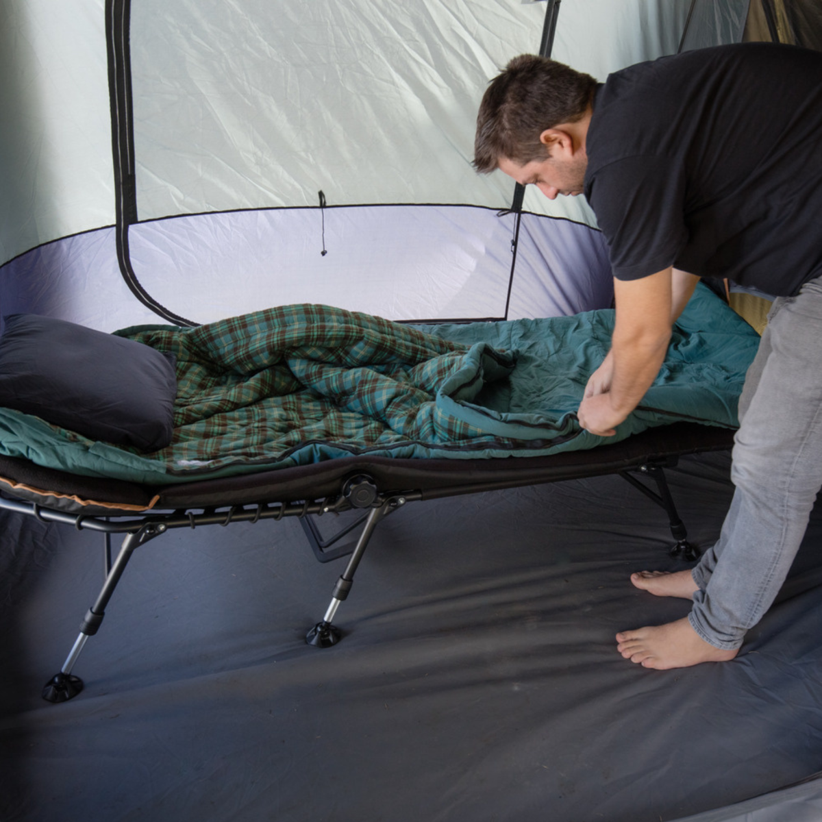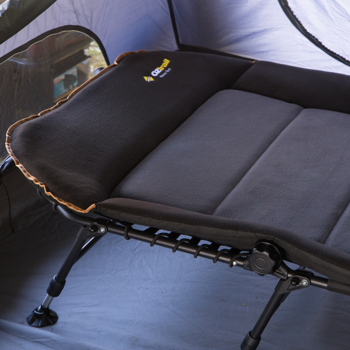 The Rhino Bed is the go-to choice for comfort and convenience at home or on the road. Its high-density removable foam padding with fleece material keeps you cozy year-round. The sturdy feet and adjustable legs ensure stability on any surface while set up is a breeze with its easy-lock folding mechanism and safety lock. The bed easily folds up into a durable carry bag for storage and transport. The Rhino Bed is large enough to cater for adults and children, making it a great option for camping, holiday homes or as a spare bed at home.