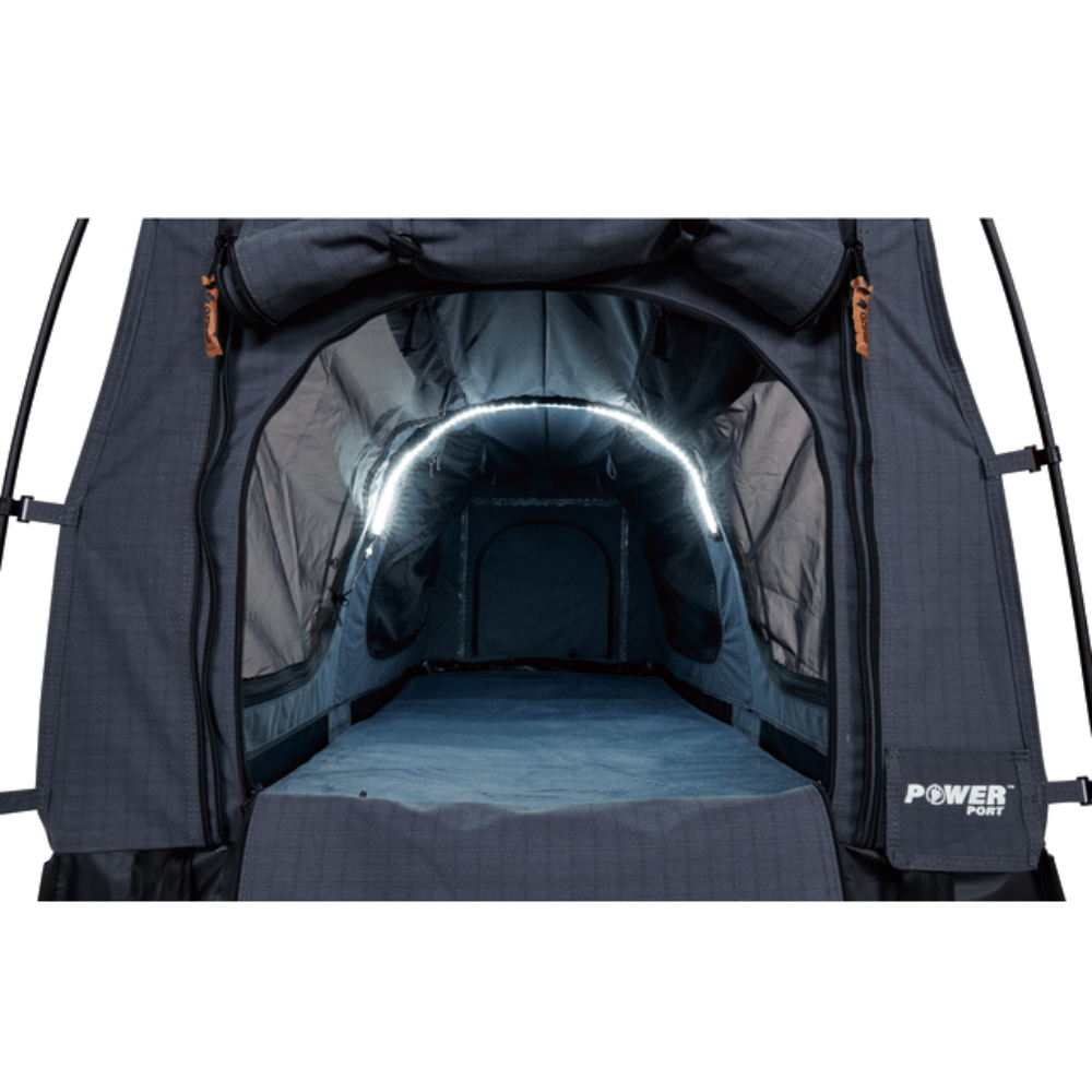 The Sundowner 900's freestanding design makes it a true overlander swag that's fast and easy to pitch. The near vertical walls and sturdy wide body provide more space than you find in most swags, and the 7cm high-density foam mattress with removable, washable luxe flannel cover ensures a comfortable night's sleep wherever you roll out. Made to withstand the harshest conditions, the 420gsm Ripstop canvas and 600gsm PVC floor will keep you dry and stand up to years of use. The ClimaTech gusseted end windows increase airflow into the swag even in bad weather, and OZtrail's Lumos technology makes it easy to light inside with flexible strip lighting so you're not left searching for a torch in the dark. Keep your gear organised and within easy reach with the six-panel flexi storage system. The oversized canvas carry bag with compression straps makes pack down fast and easy, and reduces pack size.