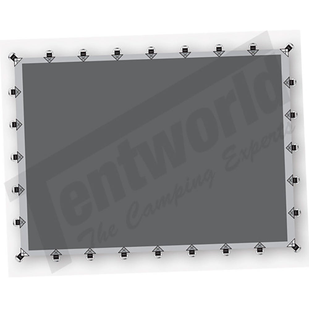 - Marine grade stainless steel D rings on all corners and centres and approximately 0.9m around the perimeter of the tarp