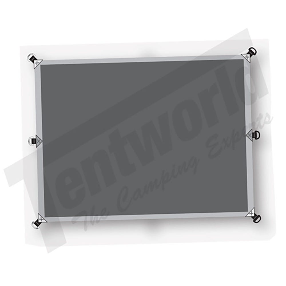 Superior strength silver coated 14x14 weave 1000 Denier HDPE (High Density PolyEthylene), with triple layer LDPE (Low Density PolyEthylene) lamination on top and bottom surfaces. Also utilising OZtrail's UVtex technology, the ultimate UV stabilisation process, the resulting product delivers maximum block out, maximum shade, maximum insulation and maximum strength.
