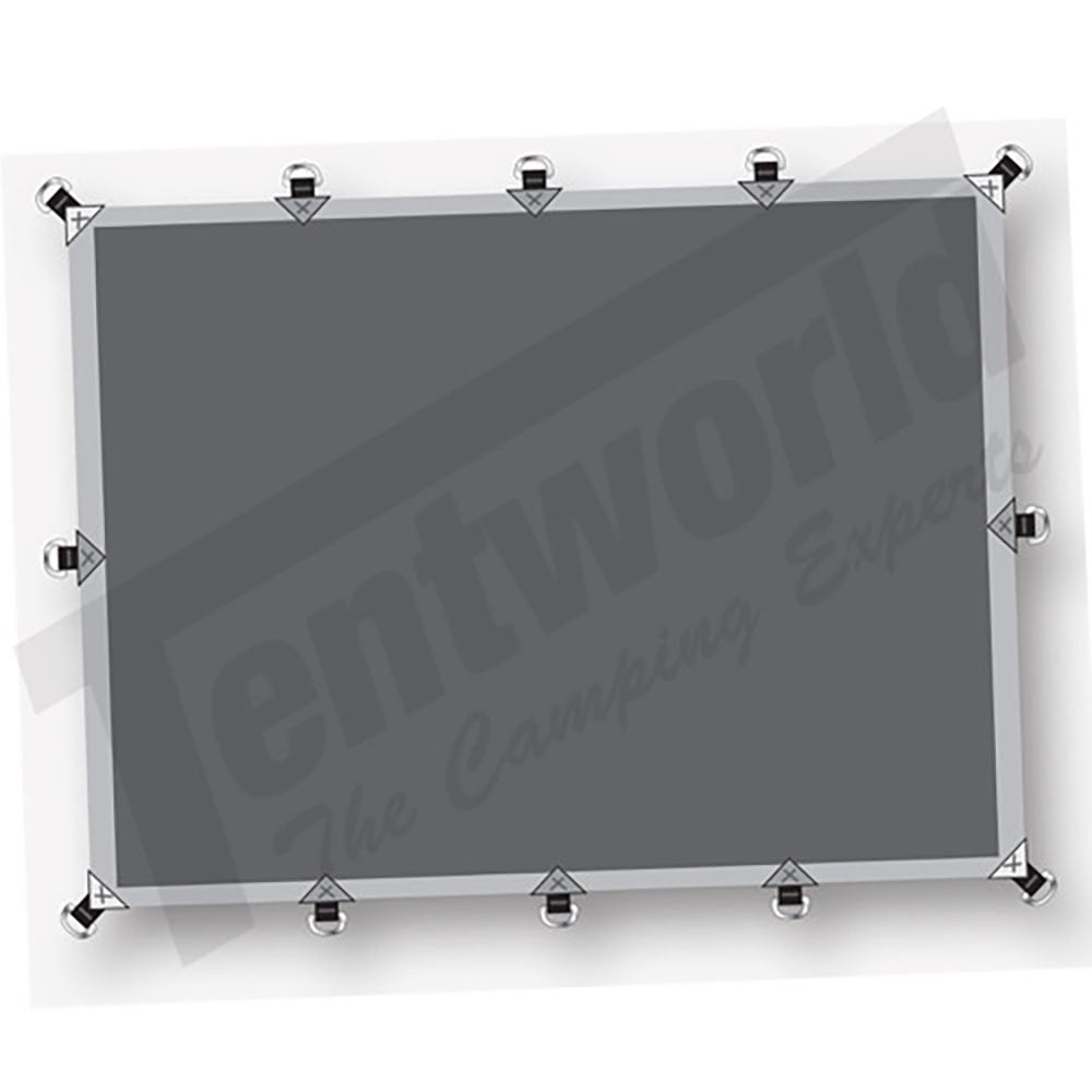 - Stainless steel welded D rings on all corners and centres and approximately 0.9m around the perimeter of the tarp