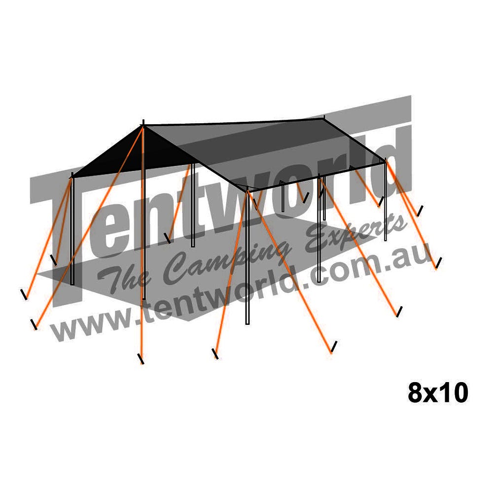 Superior strength silver coated 14x14 weave 1000 Denier HDPE (High Density PolyEthylene), with triple layer LDPE (Low Density PolyEthylene) lamination on top and bottom surfaces. Also utilising OZtrail's UVtex technology, the ultimate UV stabilisation process, the resulting product delivers maximum block out, maximum shade, maximum insulation and maximum strength.