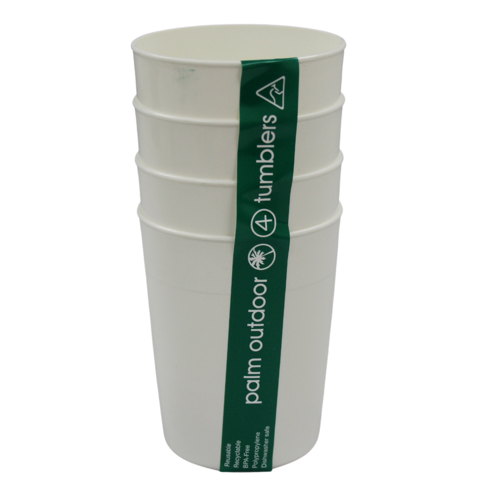 Introducing the Palm Outdoor Reusable Tumbler 4-Pack in White. Crafted from BPA-free polypropylene, these tumblers offer a sustainable and stylish solution for on-the-go hydration. With their reusable and recyclable design, these tumblers are an eco-conscious choice for daily use. The classic white colour adds a touch of sophistication, making them perfect companions for outdoor activities, picnics, or simply enjoying your favourite beverages at home. Dishwasher safe for easy cleaning, this 4-pack of tumblers is a practical and environmentally responsible addition to your drinkware collection