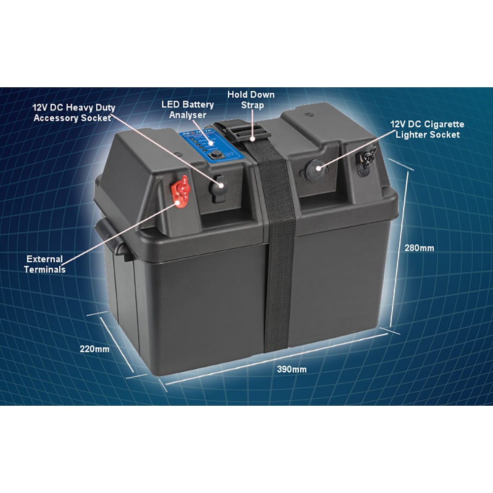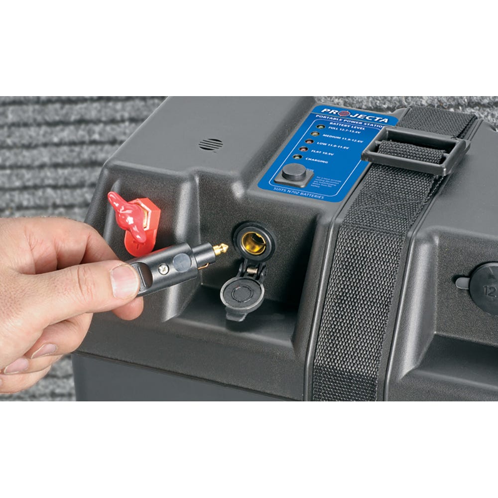 Battery boxes are a great way to convert your deep cycle battery into a portable power station. Projecta's BPE330 is your user friendly (and wallet friendly!) solution to finding a simple battery box that packs in all the features you need. Simply fit your own battery into the pre-wired box and you are ready to go.