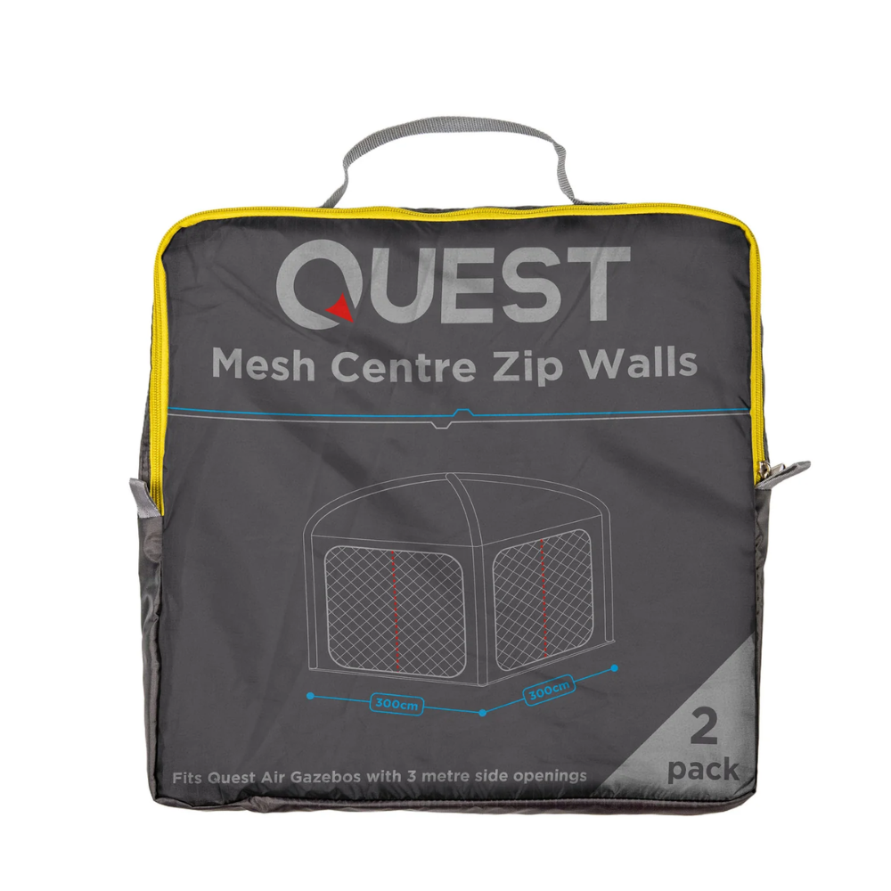 The Quest Air Gazebo 3.0 Mesh Wall Kit is made from a combination of ultra-fine, no-see-um midge-proof mesh and 75D polyester fabric to provide superior protection from even the smallest insects. The walls use Velcro full strips to attach to any side of the Air Gazebo 3 (not included).