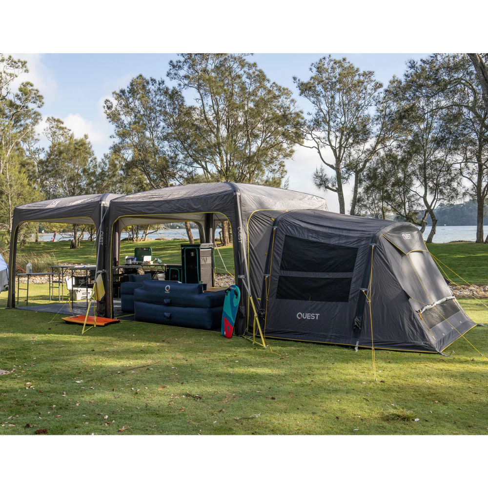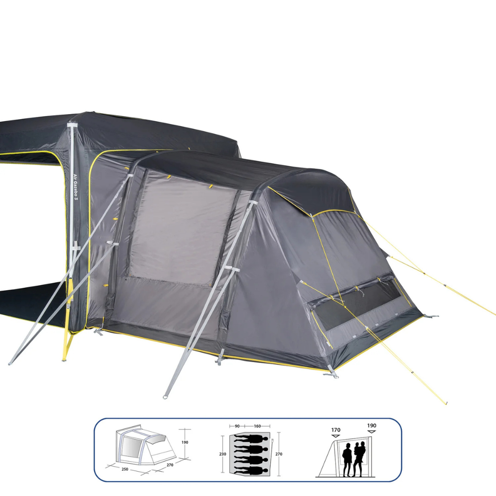 Transform your Quest Air Gazebo 3.0 into a full-blown sleeping sanctuary with the Quest Air Gazebo Pod 3.0. Designed to house up to four people comfortably, this versatile add-on is made with the same top-quality materials and construction as our Air Tent range. It features a full double-skin design for better insulation and weather protection, with large windows and rear vents for excellent airflow on warmer days.