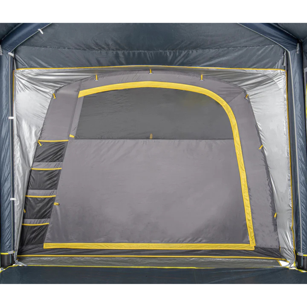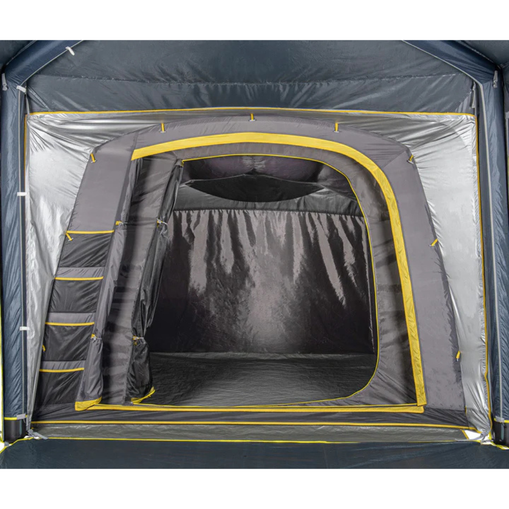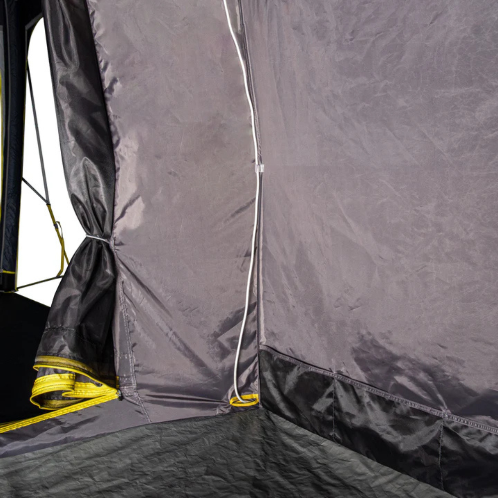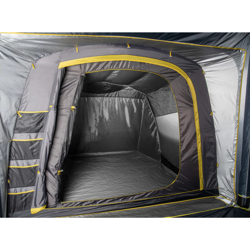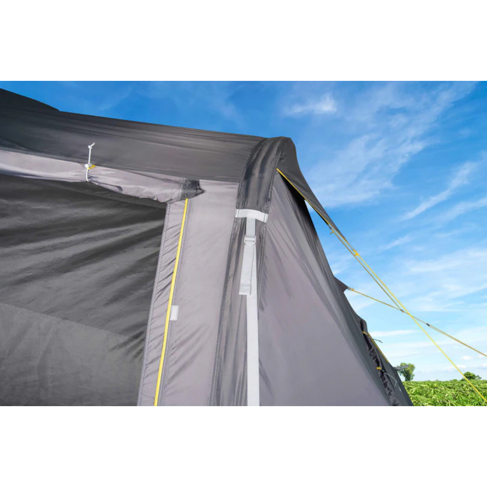 Quick to pitch with two built-in air tubes and a removable roof tube, the Pod also includes heavy-duty guy straps and 2-to-1 guy ropes for rock-solid stability. Use it attached to your gazebo or freestanding – the oversized front door, roll-up valance, and removable midge-proof inner offer easy access and customisation. With ladder pockets, a lantern hook, and power cord access, it’s packed with thoughtful features for serious comfort outdoors.