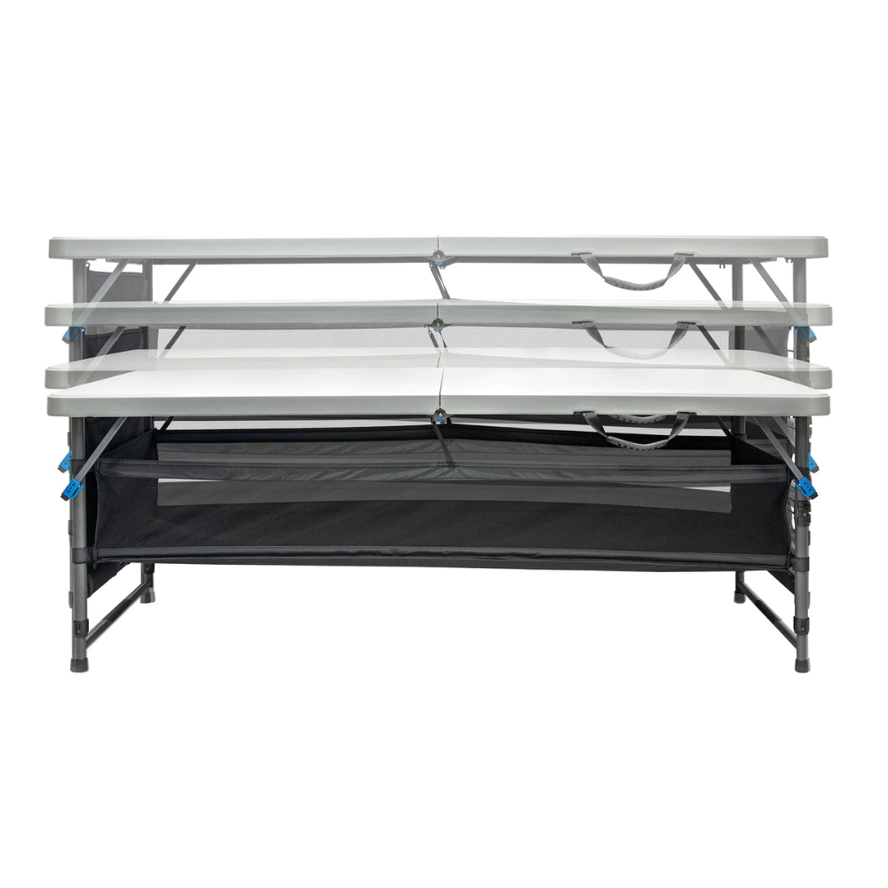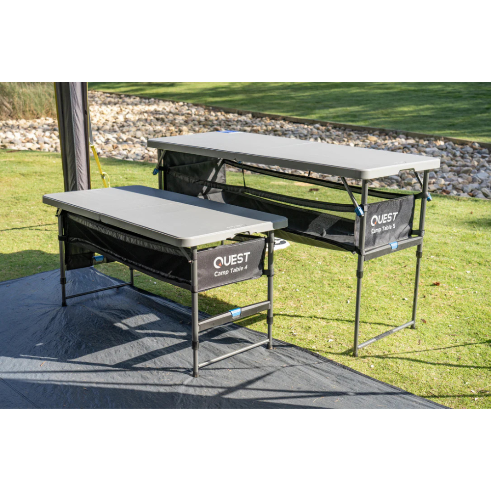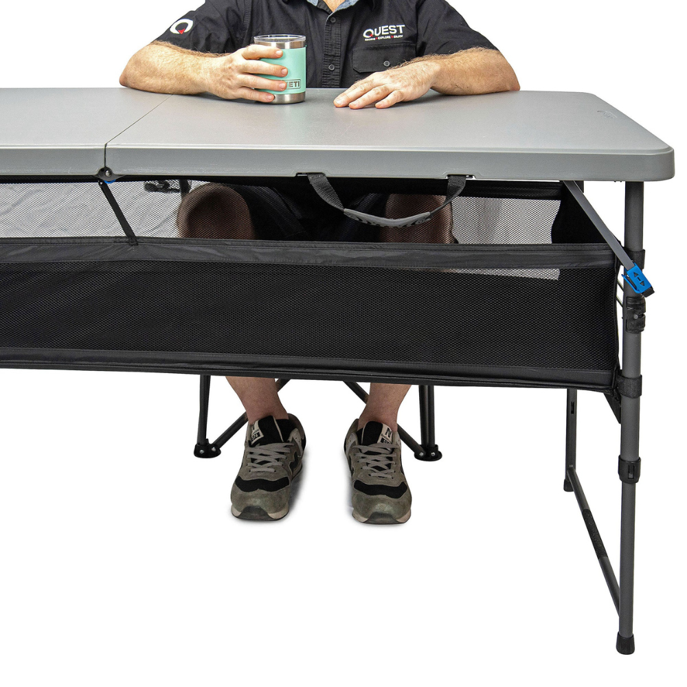 More than just a table, the Quest Camp Table 4 is a complete outdoor workstation with built-in storage to keep your essentials within reach. The under-table gear hammock provides a convenient spot for pantry items, while the side organiser with a zippered pouch and four pockets keeps utensils and small accessories neatly stored. Whether youโ€™re cooking up a storm at the campsite or need a sturdy surface for your next outdoor adventure, this table has you covered. Backed by a 2-year warranty, itโ€™s built to lastโ€”so you can focus on making the most of your time in the great outdoors!