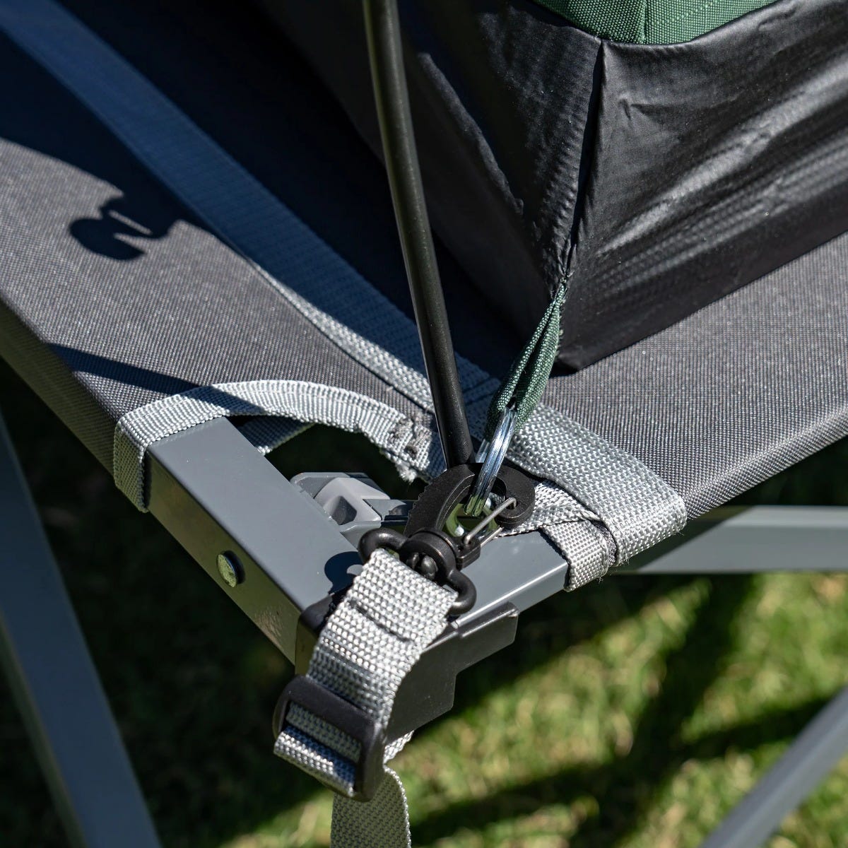 - Adjustable straps and buckles to secure a swag to the stretcher