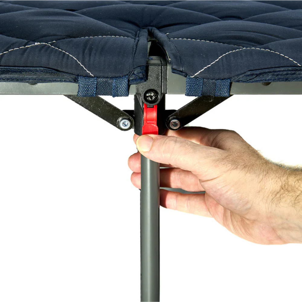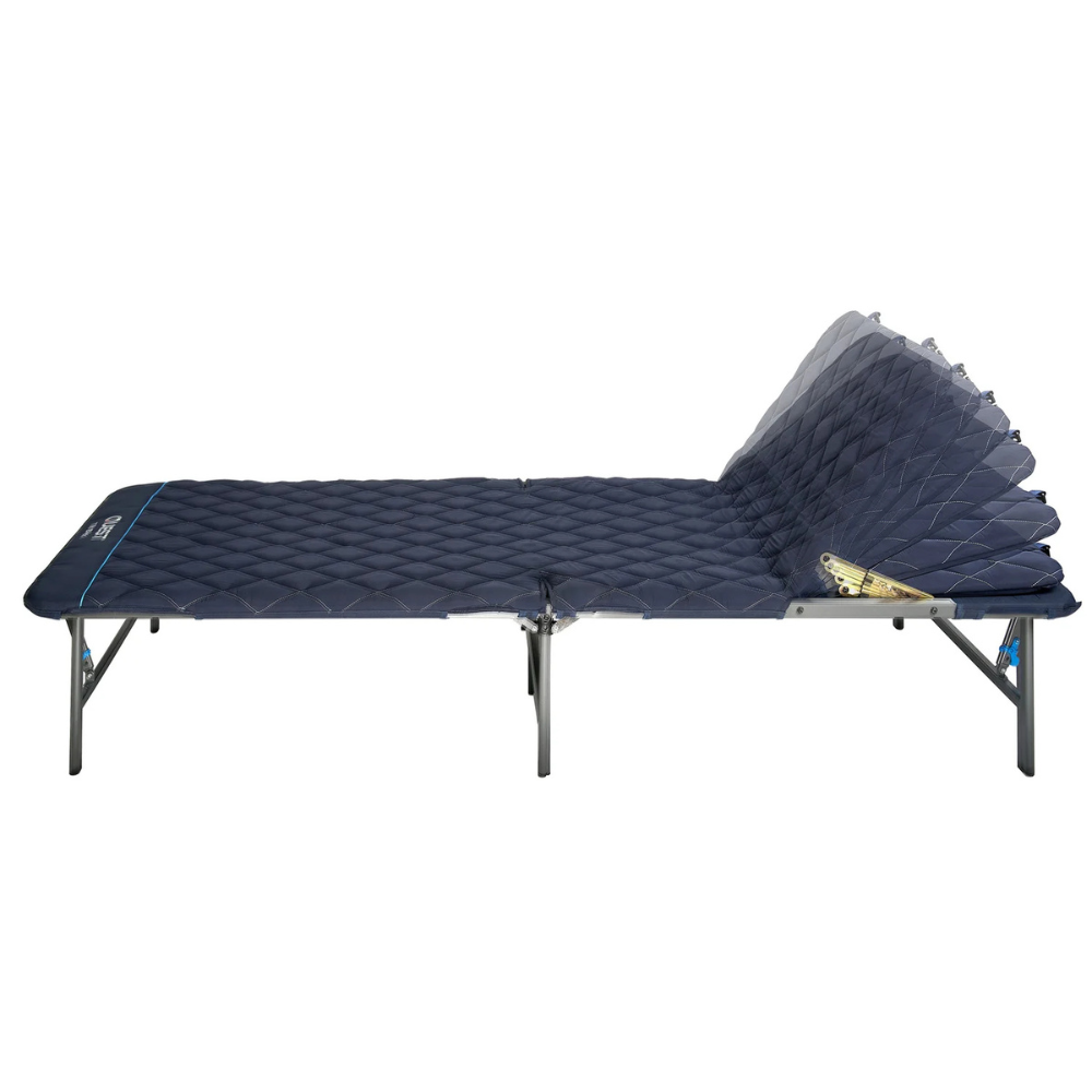 The Quest Flat Fold Bed โ Tilt Back takes campsite comfort to a whole new level. Building on the original Flat Fold design, this upgraded version features wrap-around padding for a larger, more cushioned sleeping surface and a raised height of 35cm, making it easier to get in and out of bed. The standout Tilt Back feature lets you adjust the headrest to sit up comfortablyโperfect for reading, relaxing, or just kicking back under the stars.