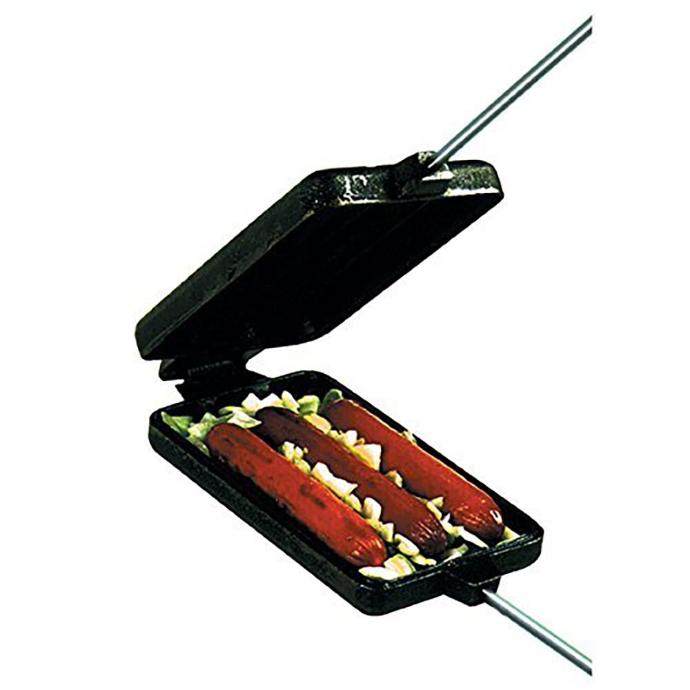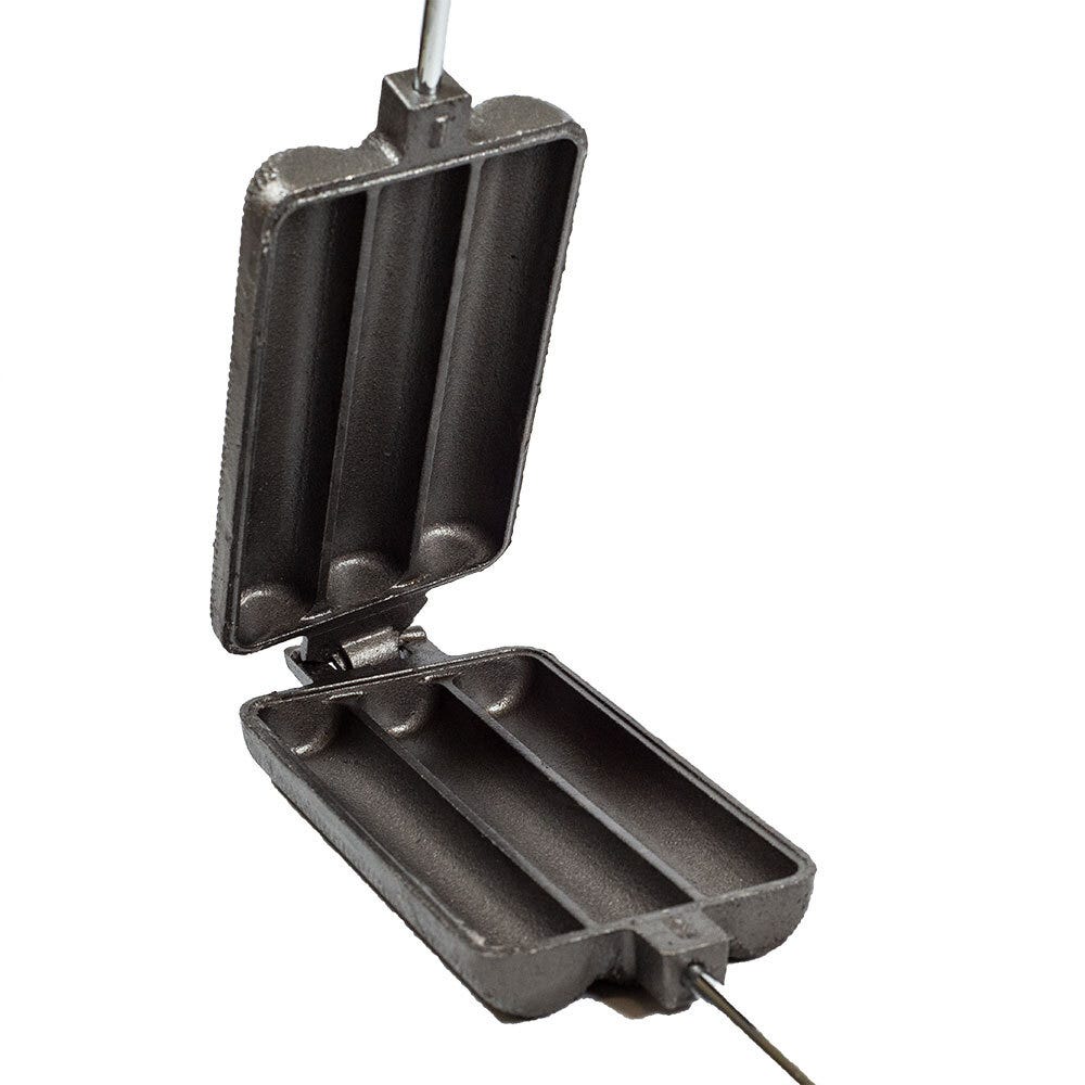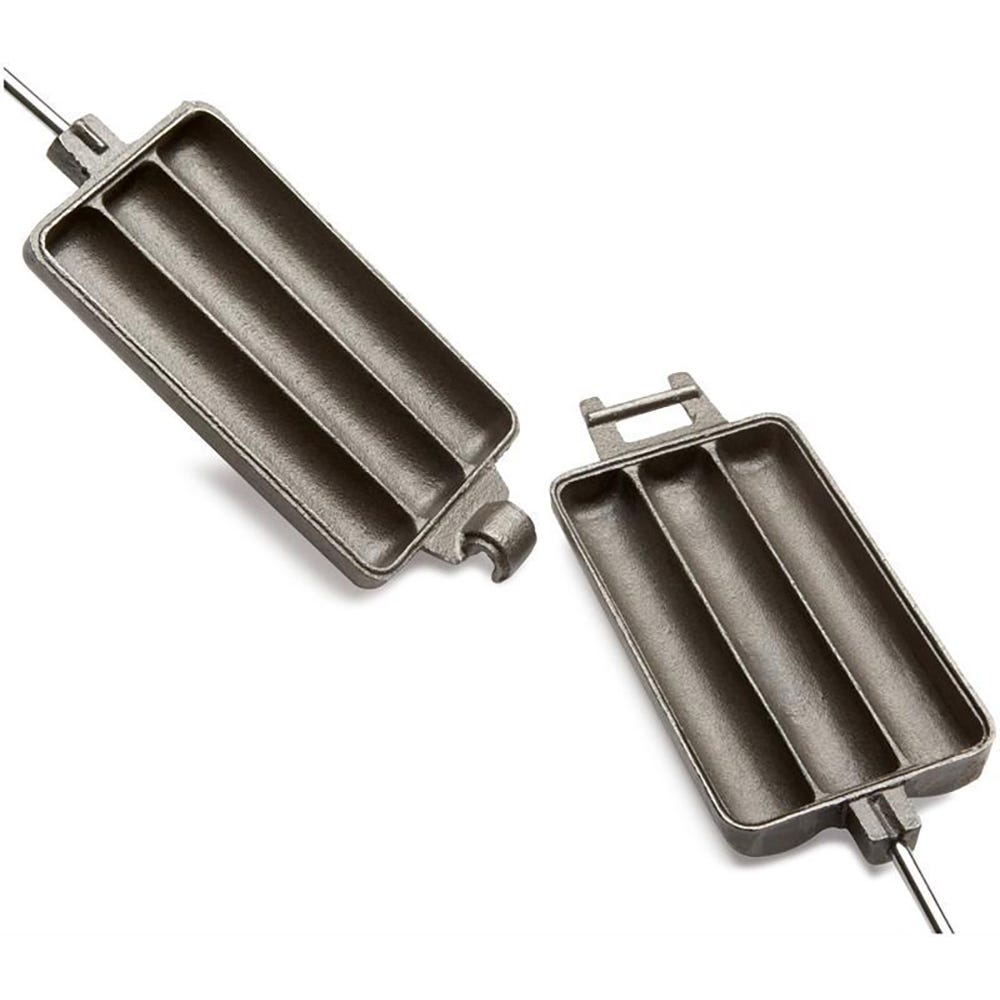 Beer dogs, brats and onions, grilled sausages? You Betcha! The Dog n' Brat Cooker lets you cook 'em all over the fire while sealing in the juices. The unique sealed design also lets you add onions, sauerkraut and other savory veggies to the sausages while cooking. The cooking cavity of the Dog N Brat cooker holds 3 sausages at a time. Cornbread and other quick breads are simple to make as well. With our cast iron design, you'll get the meat sizzling without being charred by the exposure of open flame.