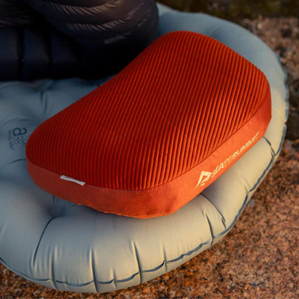 The Sea to Summit Aeros Premium Air Pillow is engineered for lightweight luxury in the outdoors. Featuring a top layer of memory foam and brushed stretch knit fabric over an adjustable air chamber, it delivers breathable, customisable support up to 12cm thick. The ergonomic scalloped shape cradles your head comfortably, fits neatly inside sleeping bag hoods, and supports all sleep positions for a better night under the stars.