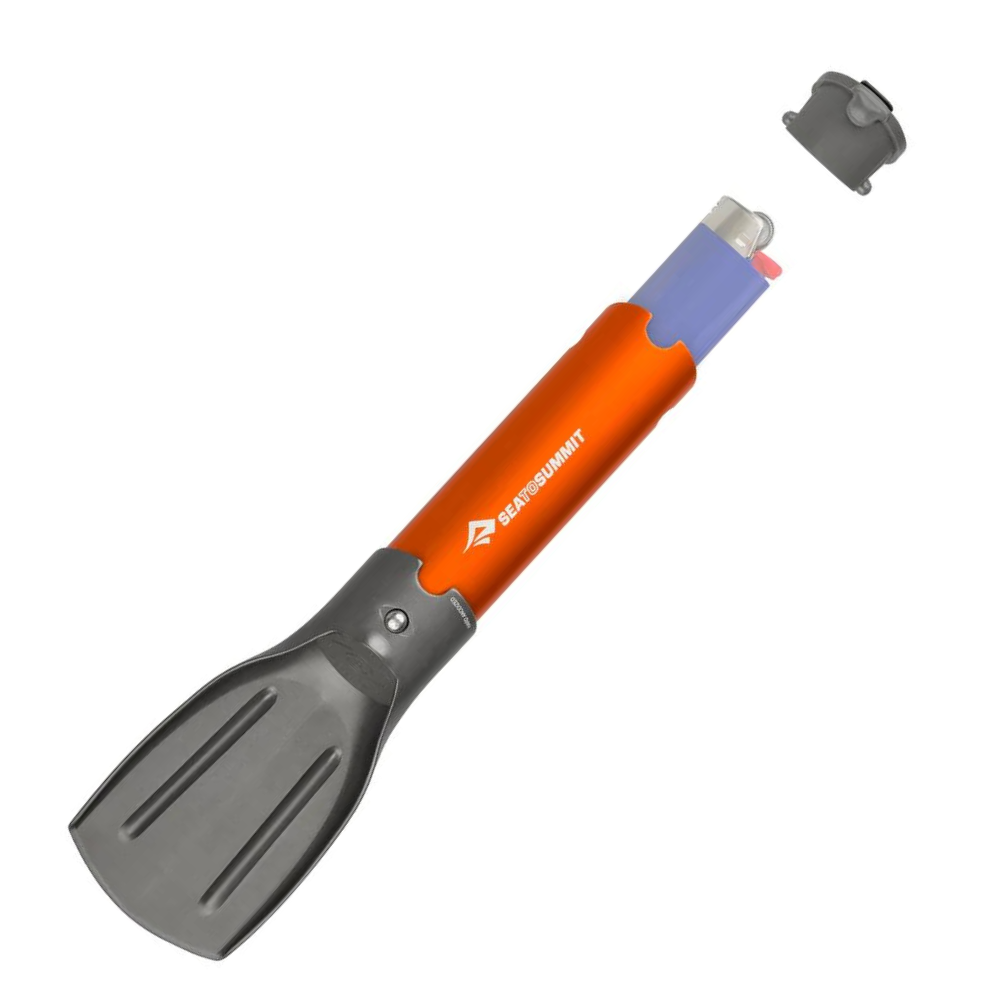 Sea To Summit is a small, privately owned global company which develops and manufactures outdoor, travel and water sport products. They provide solutions for outdoor enthusiasts looking for innovatice, durable, lightweight and compact gear. Sea To Summit continues to reseach the best materials, production methods and ideas for new products keeping us at the forefront of bringing lighter, better made, better performing gear to enthusiasts around the world. The strongest, lightest, most compact camp trowel in the world. With a detachable handle, and being able to store a gas lighter or toilet paper, there is no excuse for not carrying a Pocket Trowel for your outdoor toilet needs.
