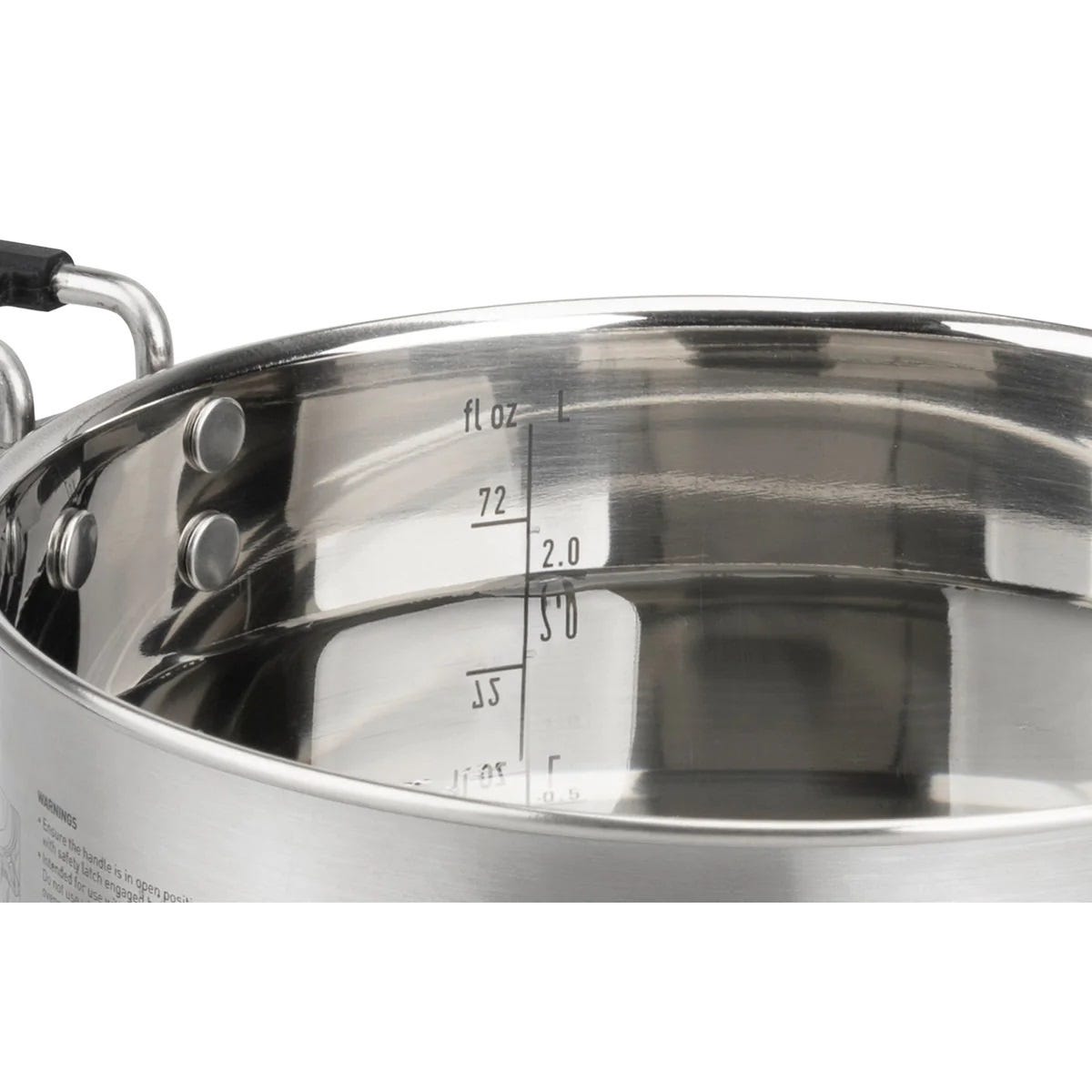 | Cookware Material | Marine grade stainless steel pot, stainless steel silicone grip handle, aluminium lid |