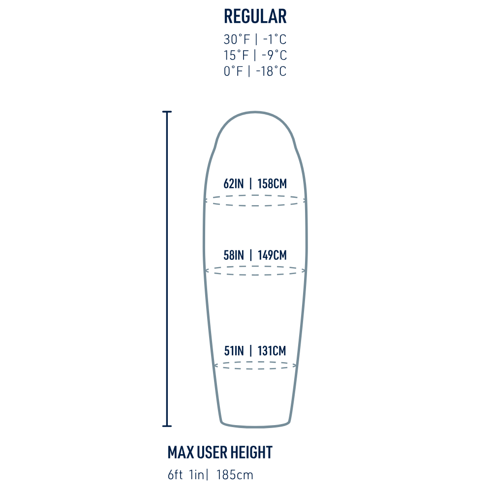 This is a great sleeping bag that keeps you comfortable in a variety of cool-to-warm conditions, the Trek may become your go-to bag. The Free-Flow Zip system allows you to open the bag sequentially for ventilation up to the point where it is opened flat as a quilt - you can even secure the snaps around your shoulders, open the footbox zipper and 'wear' the Trek around camp. 650+ fillpower duck down with a non-PFAS Ultra-Dry Down treatment keep you insulated in damper conditions.