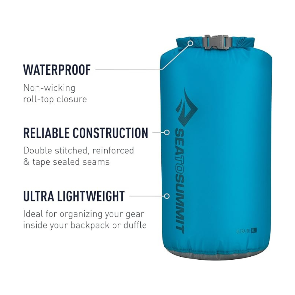 The Ultra-Sil Dry Bag won the sought-after Backpacker Editors' Choice award in 2006 and remains the ideal dry bag for backpacking and travel. Made with lightweight, waterproof bluesign® approved 30D Ultra-Sil fabric featuring Cordura® yarns, it's the perfect choice to organise your gear inside your backpack or duffle like a pro. The semi-translucent fabric makes it’s easy to see what’s in each dry bag. Other features include a non-wicking hypalon roll-top closure, an oval base to prevent the dry bag from rolling away on sloped surfaces and taped seams to keep moisture out. An excellent choice for lightweight backpacking, cycle touring and travel.