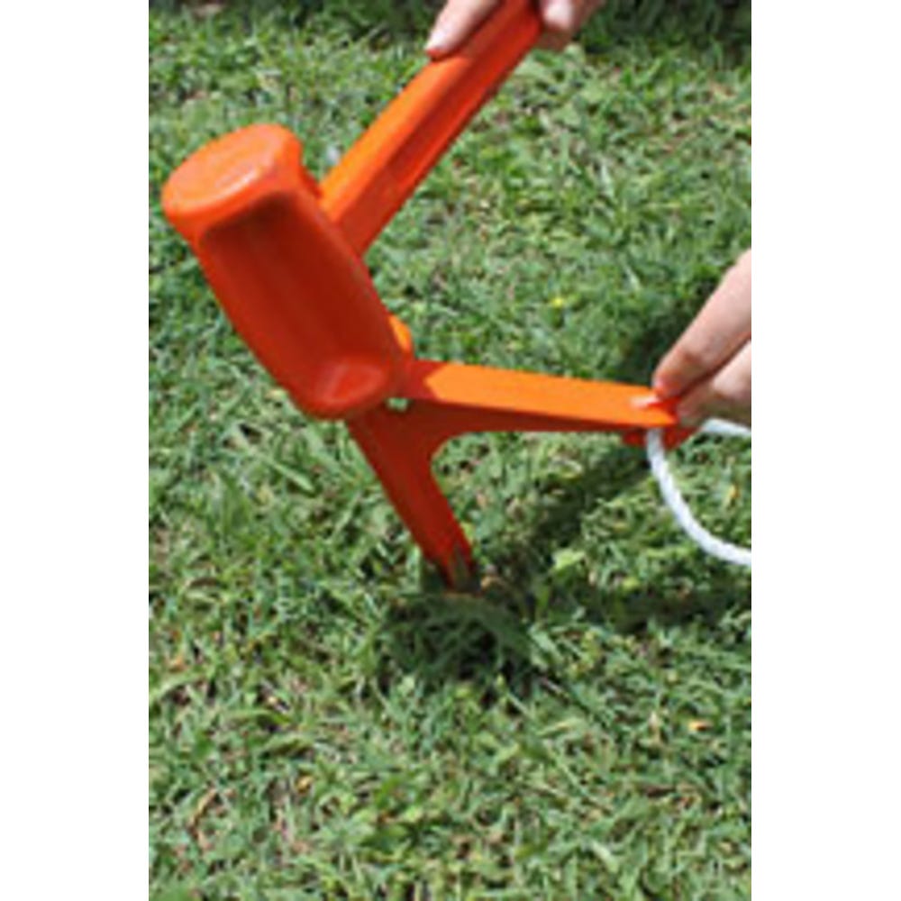 The Ground Anchor Peg is a glass filled polypropylene tent peg. The design is unique so that as the rope pulls on the peg, it will dig deeper into the ground. They are light weight and are coloured orange so they are easy to find. The unique spoonbill helps give the peg better ground holding capabilities. You are able to hammer the peg flat into the ground so that it doesn't become a tripping hazard.