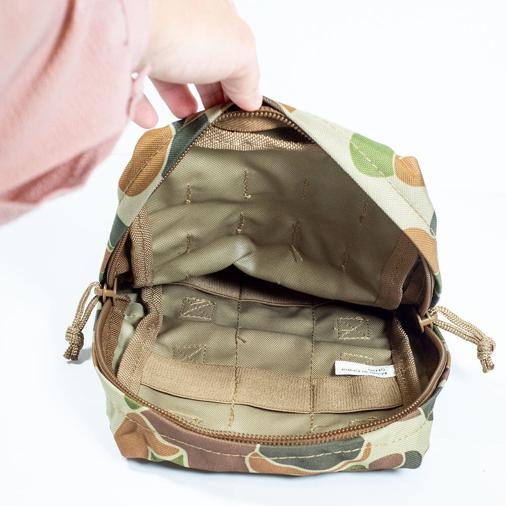The TAS 1307 Multi-Use Pocket - Medium - in the colour Auscam are multi-use pockets ideal for your next camping, military or outdoor adventure. Featuring drainage holes, the TAS 1307 Multi-Use Pocket in medium are also fully MOLLE compatible! Made from durable 900 Denier Double PU Coated fabric with no.10 zips, this Multi-Use Pocket is sure to last!