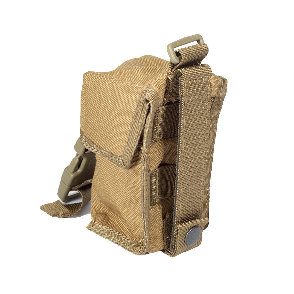 The TAS 3375 Pouch in the colour Khaki is ideal for all military needs, as well as outdoor adventures. Made from heavy duty 900 denier fabric with a double PU coating, this grenade pouch will last in all kinds of tough conditions. This pouch is secure with buckles and a clip closure, and also features nylon webbing to remain breathable, mesh drainage holes in the base of the pouch and a MOLLE attachment.