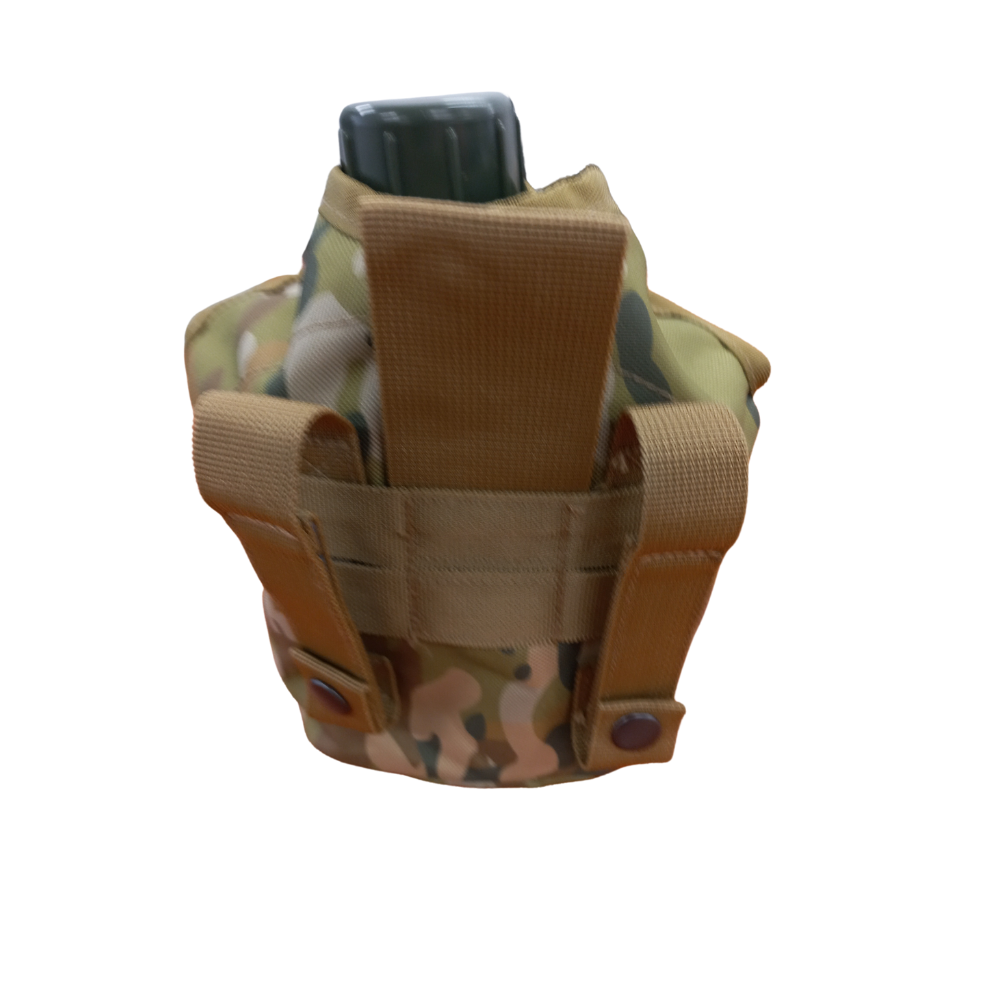 Designed for serious outdoor use, this oversized canteen pouch comes complete with a 1L water bottle—making it the perfect all-in-one hydration and cooking solution. Built from rugged 900D fabric with a dual PU coating, it easily fits the included bottle, a stainless steel kidney cup, and a full-size hexamine stove with tablets.