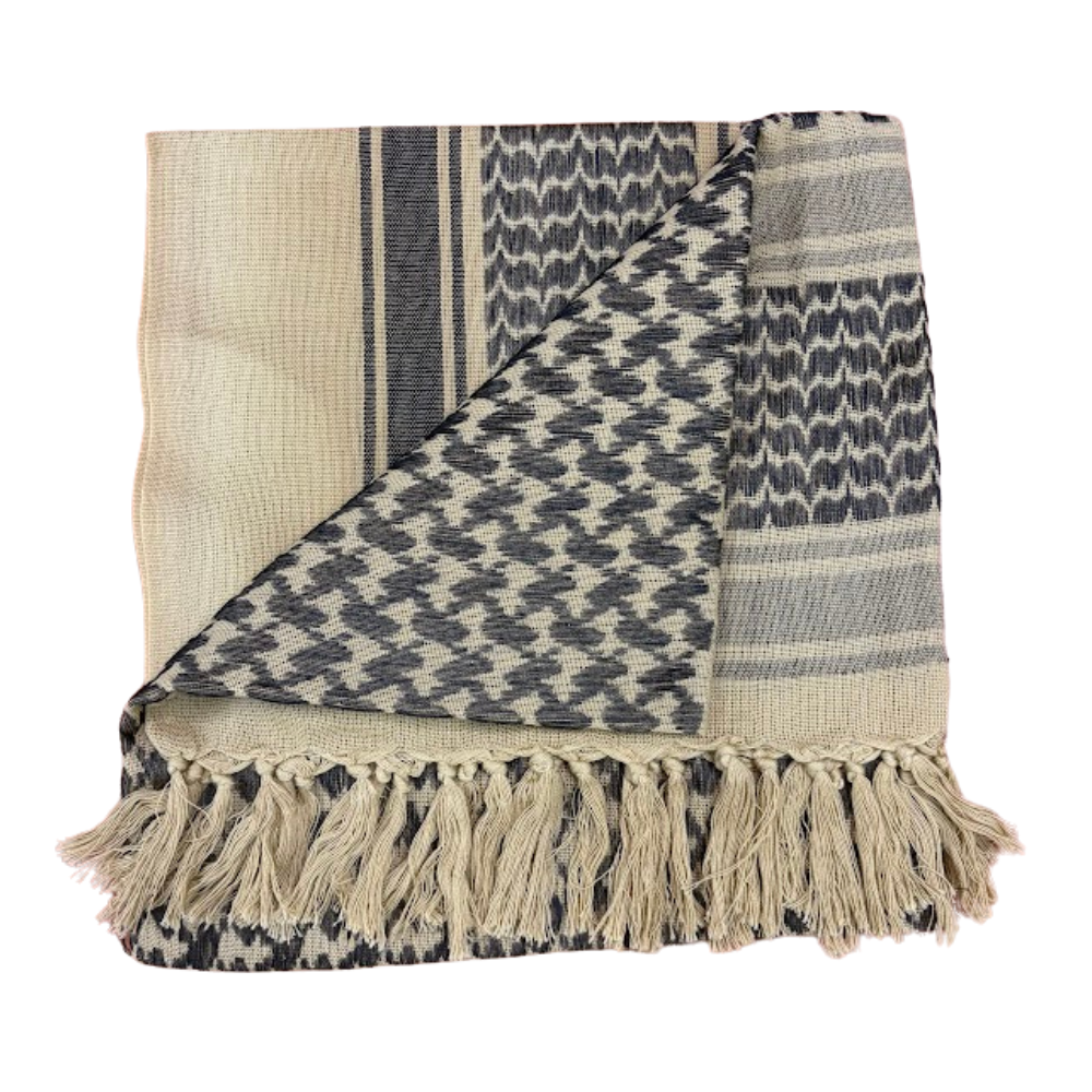Discover the unmatched versatility of the shemagh, a traditional woven scarf that's become a global essential. Whether you're braving the elements, adding a touch of style, or seeking a practical tool, the shemagh delivers. Crafted from breathable, durable cotton, this lightweight scarf provides protection from sun, wind, dust, and cold. Wear it as a headwrap, neck scarf, face covering, or even a makeshift towel or sling. The classic woven pattern adds a timeless, rugged aesthetic to any outfit. Perfect for outdoor adventures, travel, or everyday use.