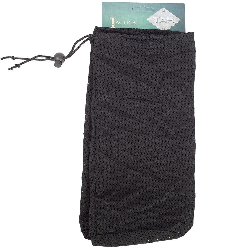 - Black mesh with toggle drawstring