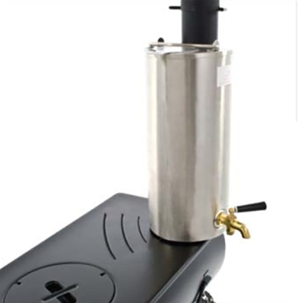 The stainless steel flask accessory is ideal for boiling water while your food is cooking, or even as a fresh water flask. With its durable non-rust brass tap and wide slide opening, it’s a breeze to use and refill. Made from high grade 1mm thick #304 stainless steel with a fitted top carry handle, with stainless steel swing arms allowing it to fit onto any 60mm flue.