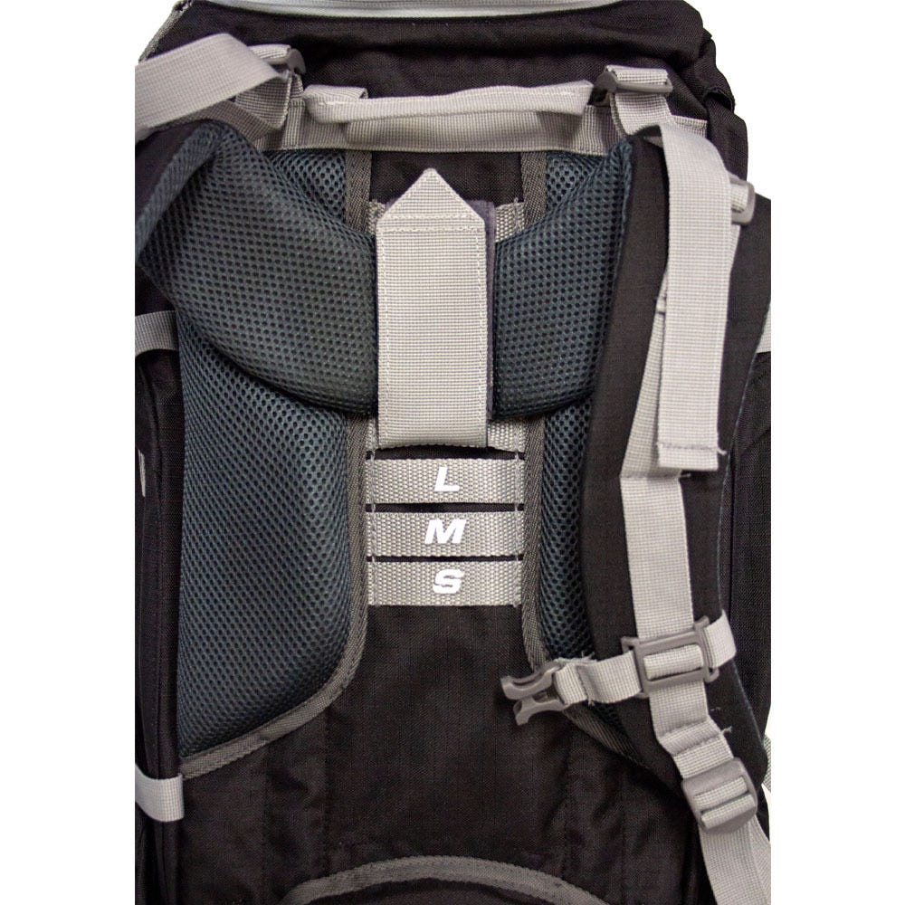 The adjustable harness has different size options to choose from. Featuring top and base entry, there is a drawstring wall separating the two compartments. This allows you to easily grab items from the base without losing all your contents, whilst still having the option to access items through the zip. Compression straps throughout help to minimise the size of your bag.