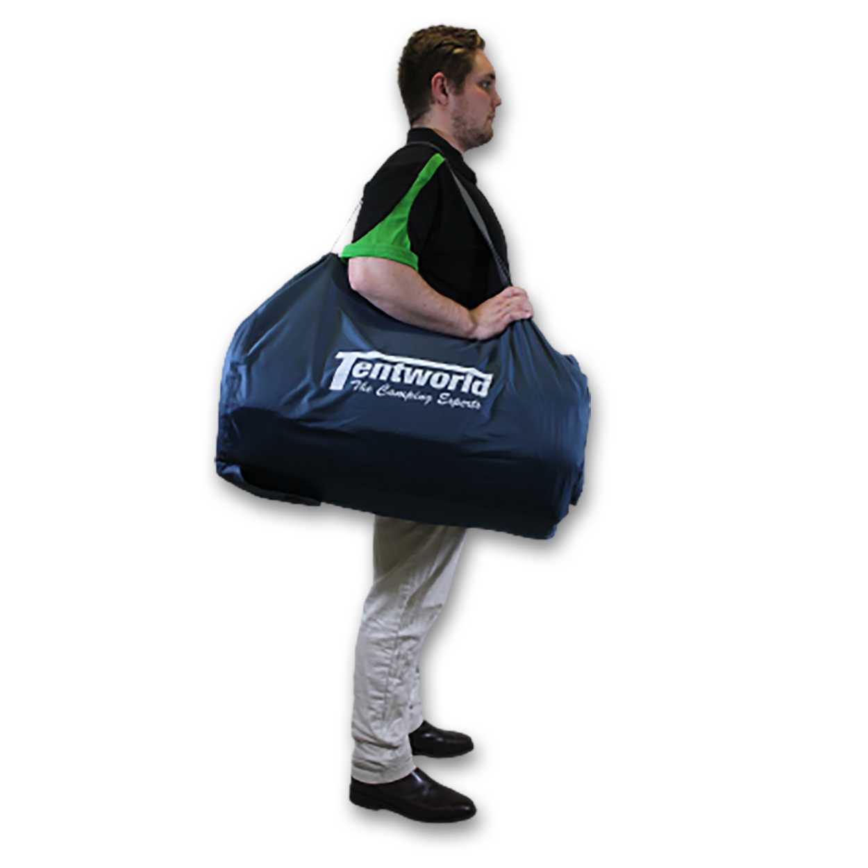 - Oversized carry bag with an adjustable strap and built-in air pump functionality