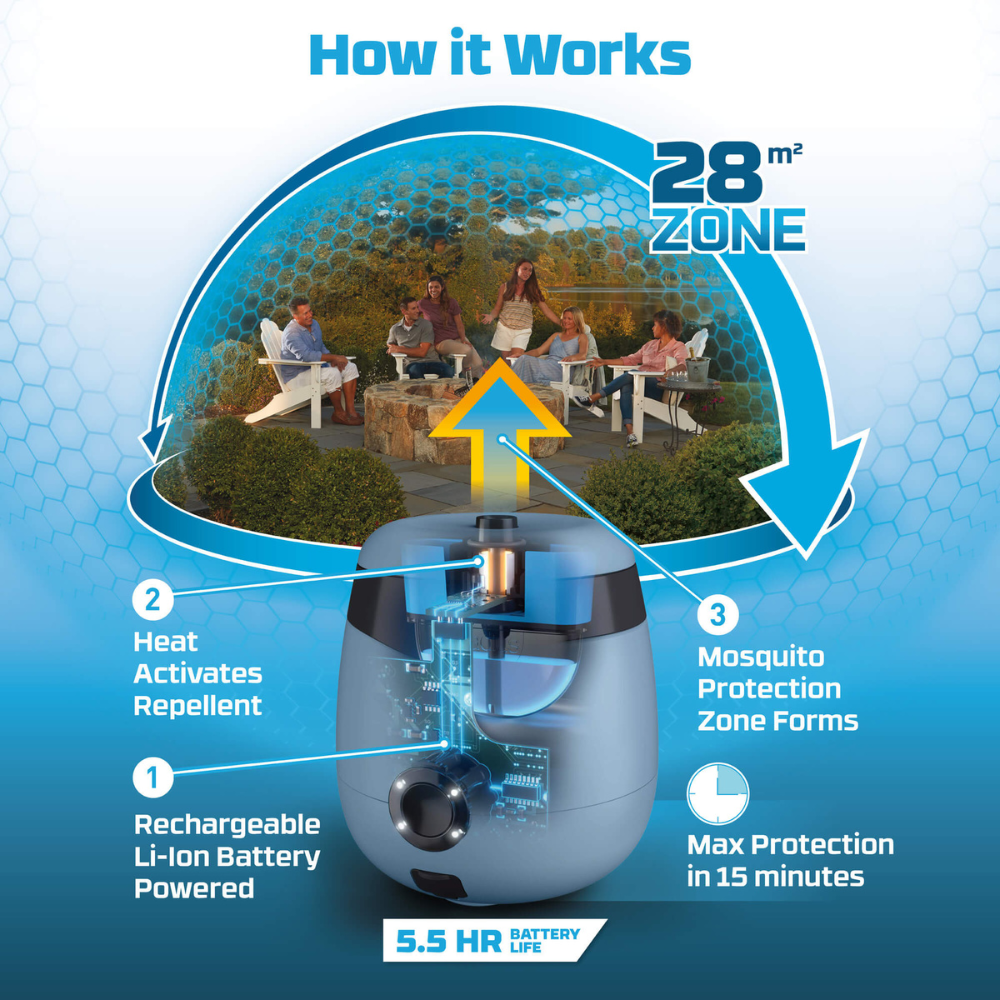- 28m² Zone of Protection – 80% more coverage than standard Thermacell devices