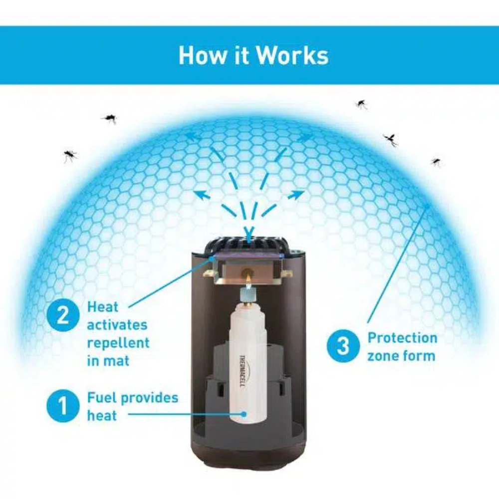 - Includes 3 repellent mats (12 hrs total) and 1 fuel cartridge