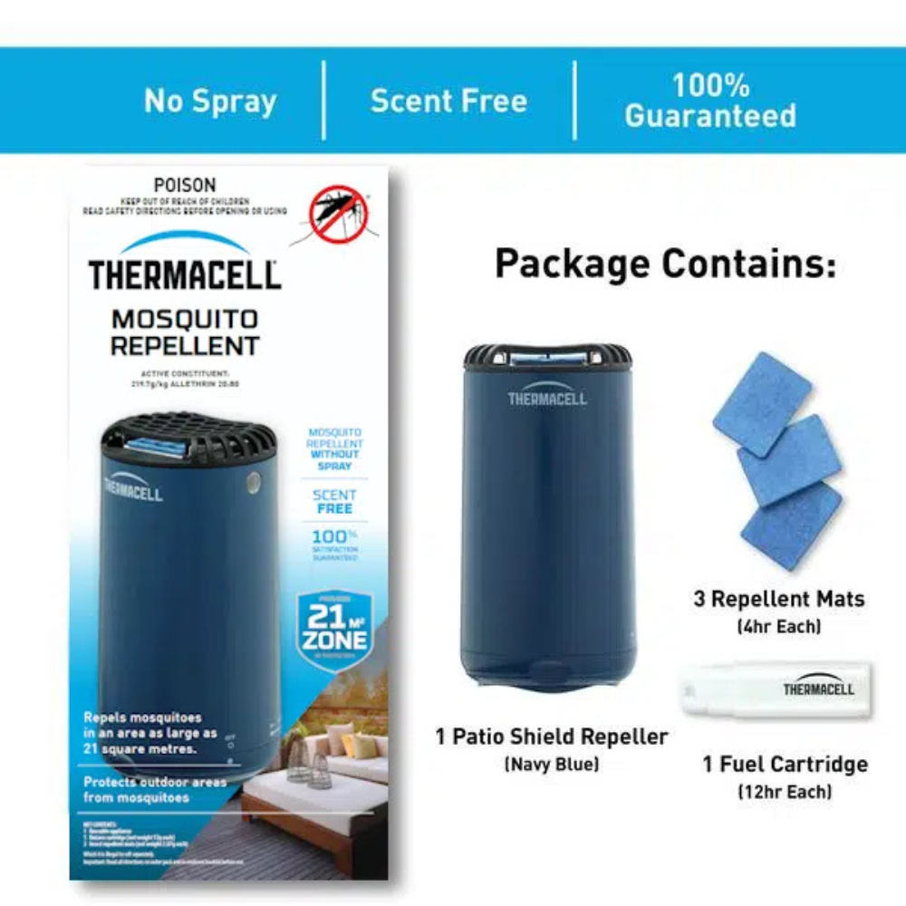 - Includes 3 repellent mats (12 hrs total) and 1 fuel cartridge