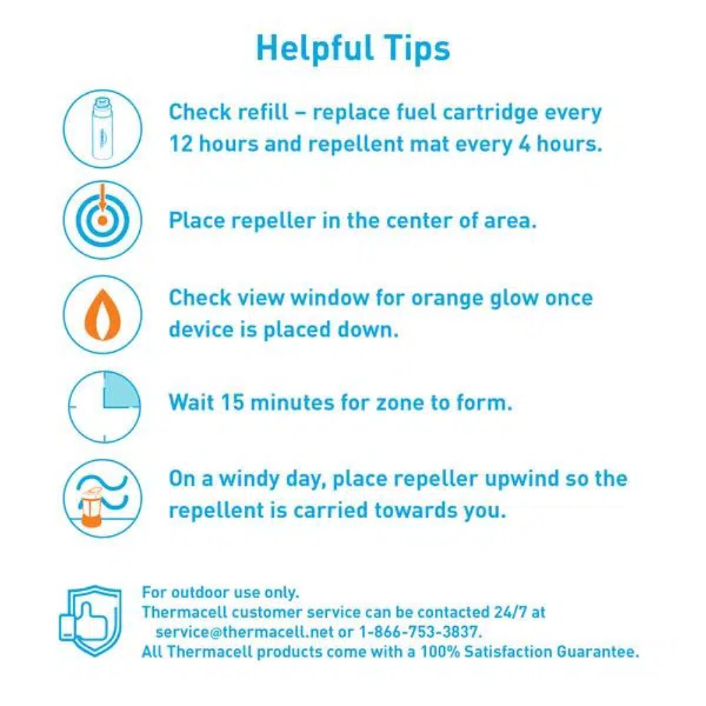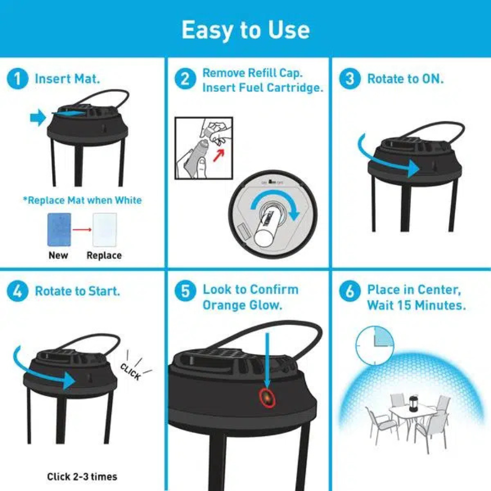 - Includes 12 hours of refills (3 mats + 1 fuel cartridge)