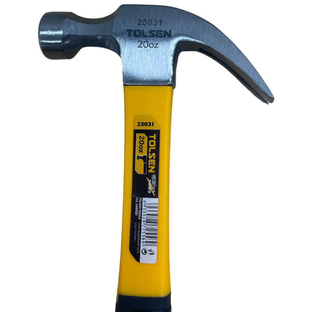 Enhance your tool box with the Tolsen Claw Hammer! Crafted with a drop-forged carbon steel hammerhead and a fiberglass handle for durability and comfort, this versatile tool features a round head for driving nails and a curved claw for removing them. Its ergonomic design ensures a secure grip, making it an essential addition to your toolkit. Whether you're setting up a tent or repairing gear, this reliable hammer is built to last.