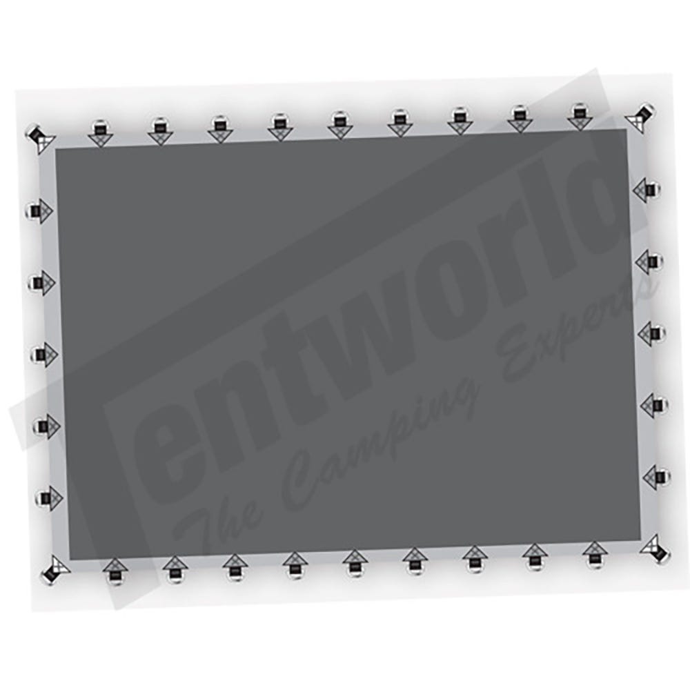 Superior strength silver coated 14x14 weave 1000 Denier HDPE (High Density PolyEthylene), with triple layer LDPE (Low Density PolyEthylene) lamination on top and bottom surfaces. Also utilising OZtrail's UVtex technology, the ultimate UV stabilisation process, the resulting product delivers maximum block out, maximum shade, maximum insulation and maximum strength.