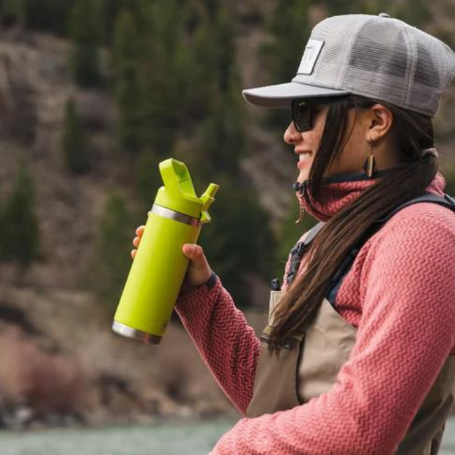 Waste no time hydrating on your morning hikes, kayak trips, and daily commutes with our flip and sip color-matched straw cap water bottle. The Rambler 18 oz. Water Bottle has a leak-resistant cap and an easy to carry TripleHaul Handle so you’ll have cold water wherever you go. This bottle is over-engineered and double-wall insulated to keep your water cold until the last sip, and it’s dishwasher safe for easy cleaning. Plus, it comes with a wide-straw insert, so you get more drink with every sip.