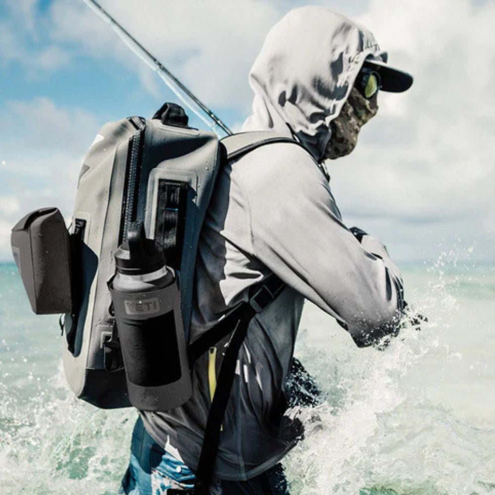 This Bottle Sling is the simple solution to transporting your H20 hands-free. That way you can eat snacks, skip rocks, or indulge your dog in a riveting round of fetch. You can even keep your cash and cards safe by sticking them in the Joey Pocket. Mount it to the HitchPoint Grid on any Hopper Soft Cooler (or the Camino Carryall Bag). But if you’re lookin’ to hike light, clip on the removable carrying strap, sling it over your shoulder, and enjoy the journey up to that gotta-see-it viewpoint.The Large Bottle Sling will fit the 26 and 36 oz. Rambler Bottles.