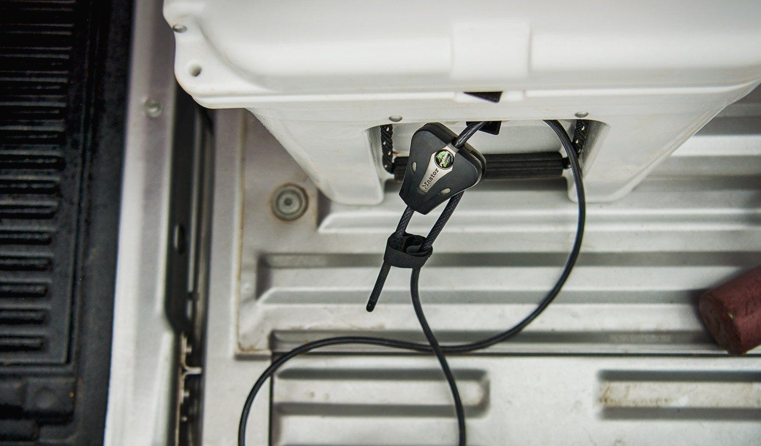 Secure your Yeti Tundra in a truck bed or any other areas where it might be vulnerable with the Yeti Security Cable Lock & Bracket. This high-strength carbon steel lock bracket is designed to fit into your Yeti's AnchorPoint Tie-Down Slots. The 6ft. long cable, with fully adjustable lock, holds tight at any position and easily threads through anchor points. For those that want an even more substantial theft deterrent, consider the high-strength carbon steel Yeti Locking Bracket and use the cable or chain and lock of your choosing.