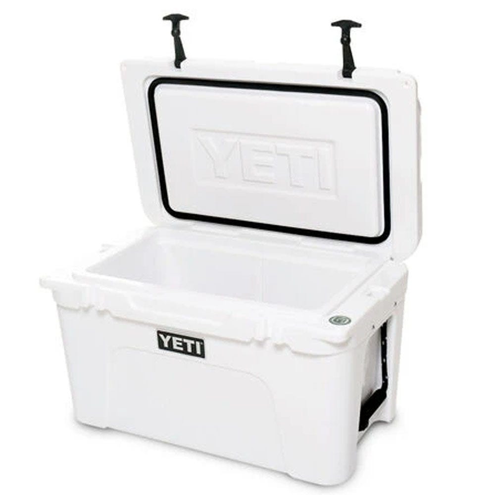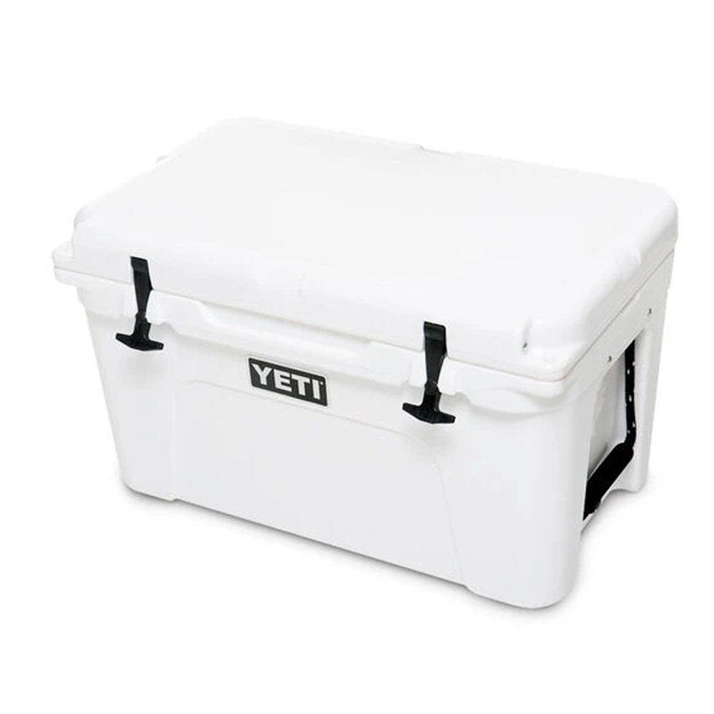 The YETI® Tundra® 45 combines versatility with durability. This premium cooler is infused with that legendary YETI toughness, a durable rotomolded construction and up to two inches of PermaFrost Insulation. It's UV-resistant and damn-near indestructible. The durable, marine-grade polyester rope handles with textured grips let you easily haul your Tundra 45 to the campsite and out on quick camping excursions. It's also great for a day on the lake, due to its molded-in tie-down slots and non-slip feet.