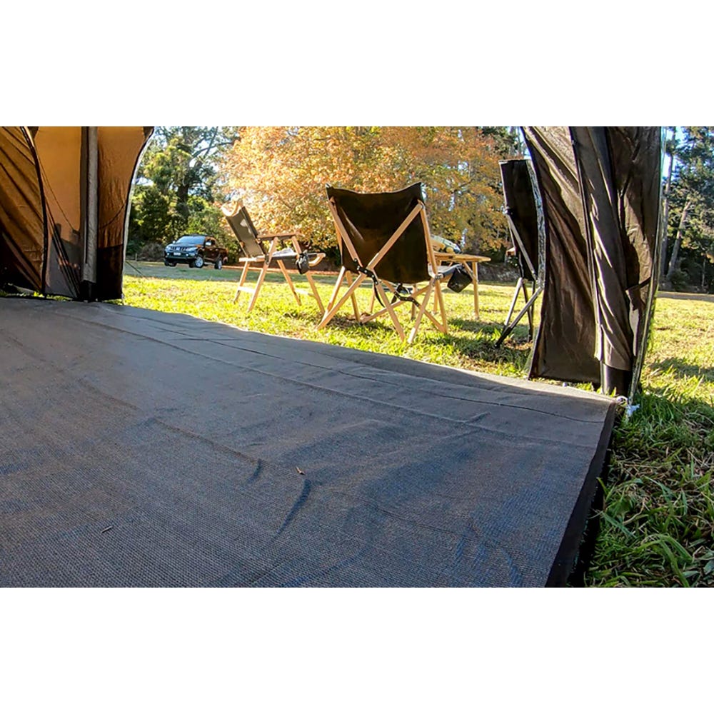 Carry bag included, Covers awning area, Peg point eyelets, Mesh material for drainage, Minimises grass damage, Stretch resistant binding