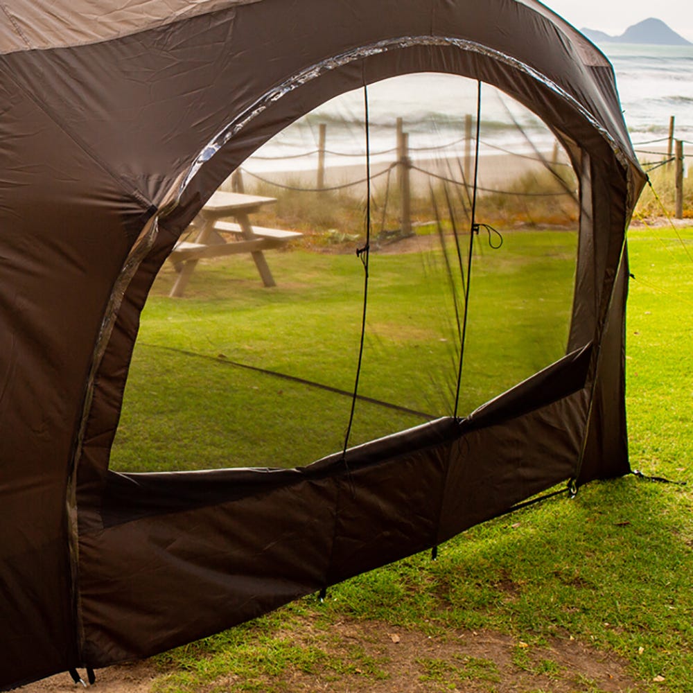 Additional zip-on wall compatible with the Aerobase 3 Pro Shelter. Use a single wall for additional shade or as a windbreak, or add multiple walls to fully enclose your shelter. Internal window covers open for additional airflow and zip close for weather protection. Centrally placed door toggles allow you to roll back and secure the wall half-way for easy entry and exit.