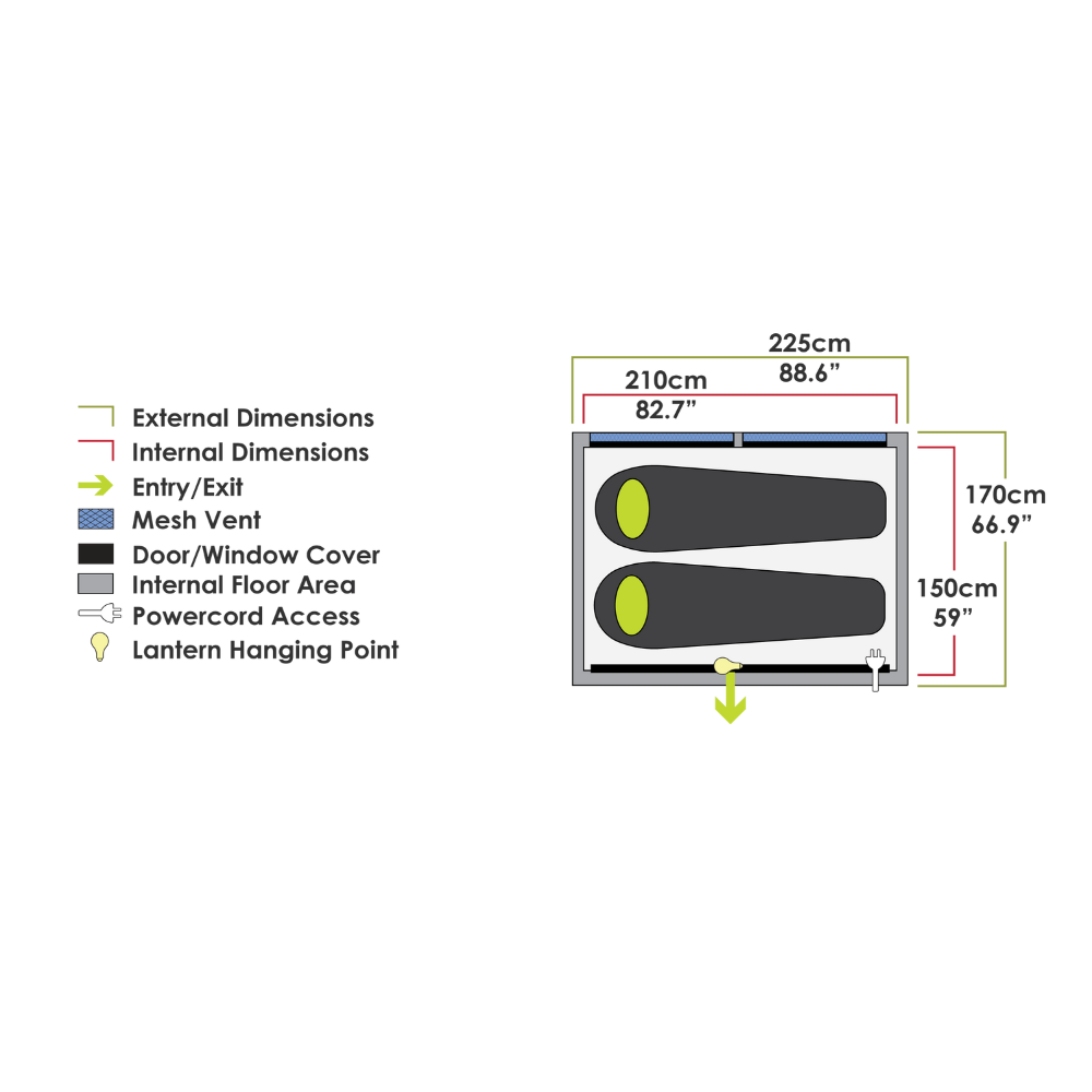 Transform your Zempire Speedbase 2 Air Shelter into a comfortable sleeping space with the Zempire Base 2 Air Gazebo Bedroom Pod. Designed for convenience, this zip-on pod comfortably sleeps up to two people, making it an ideal solution for couples or friends who want a private, weatherproof retreat. Built with Zempire’s durable Dura-Core 150D fabric, offering UPF 50+ sun protection and a 3,000mm waterhead rating, it ensures reliable shelter in a range of conditions. Thoughtful touches like a 360° door with mesh ventilation, internal storage ladders, and power cord access make your camping experience both practical and comfortable.