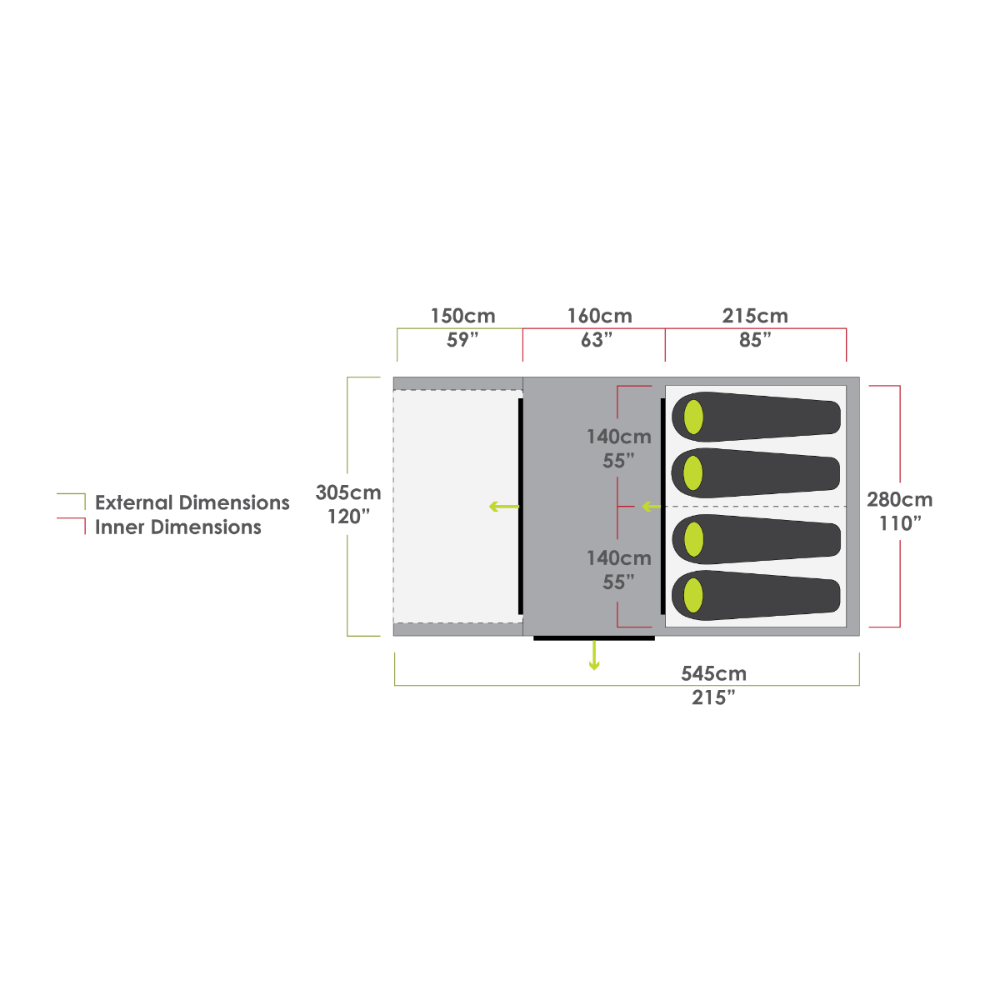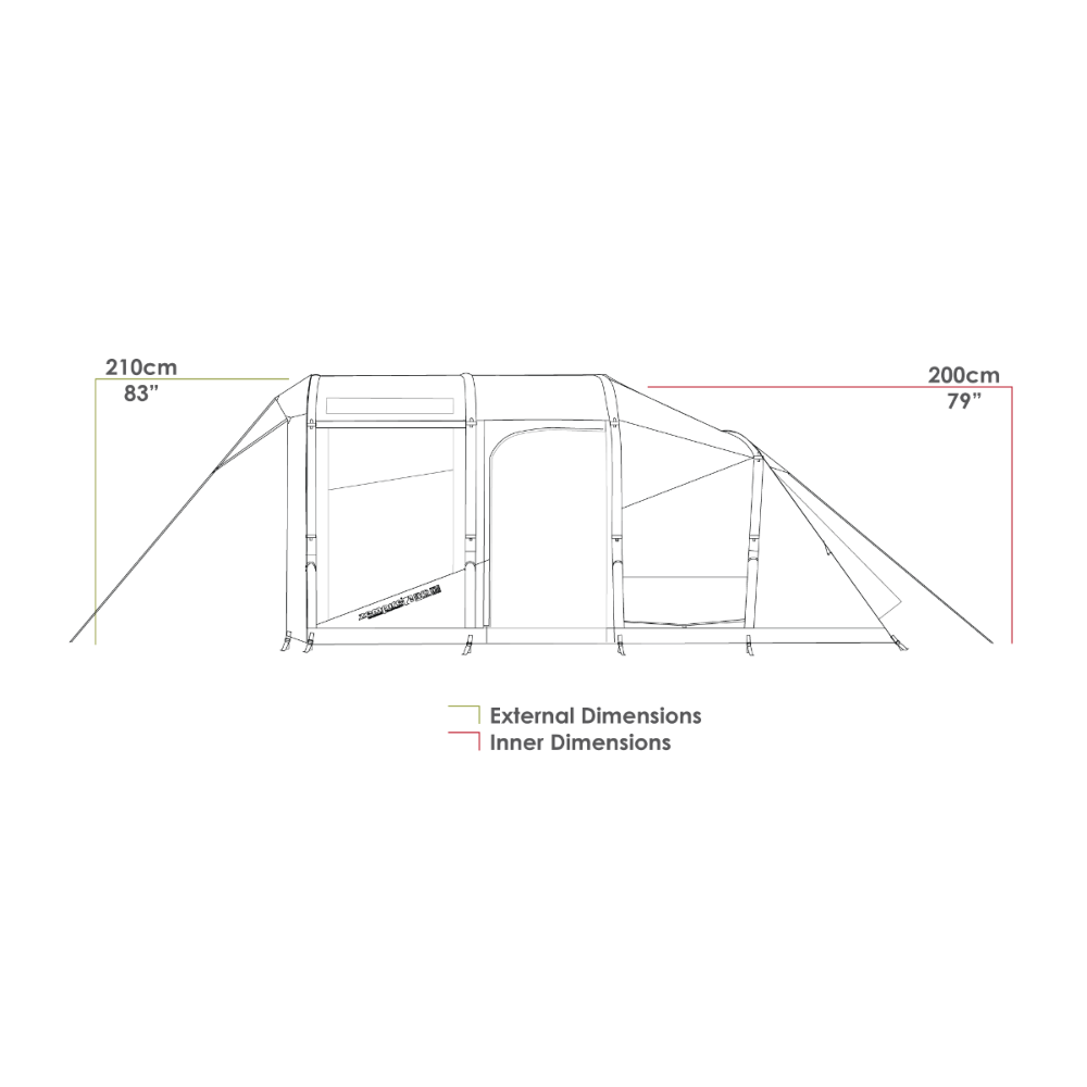The large front awning area, PVC skylights, and excellent ventilation add up to make the Evo TM V2 the latest and greatest mid-range tent for couples or small families. A light-diffusing bedroom fabric ensures uninterrupted sleep on lazy mornings and the angled beam construction offers improved wind stability and headspace throughout the tent.