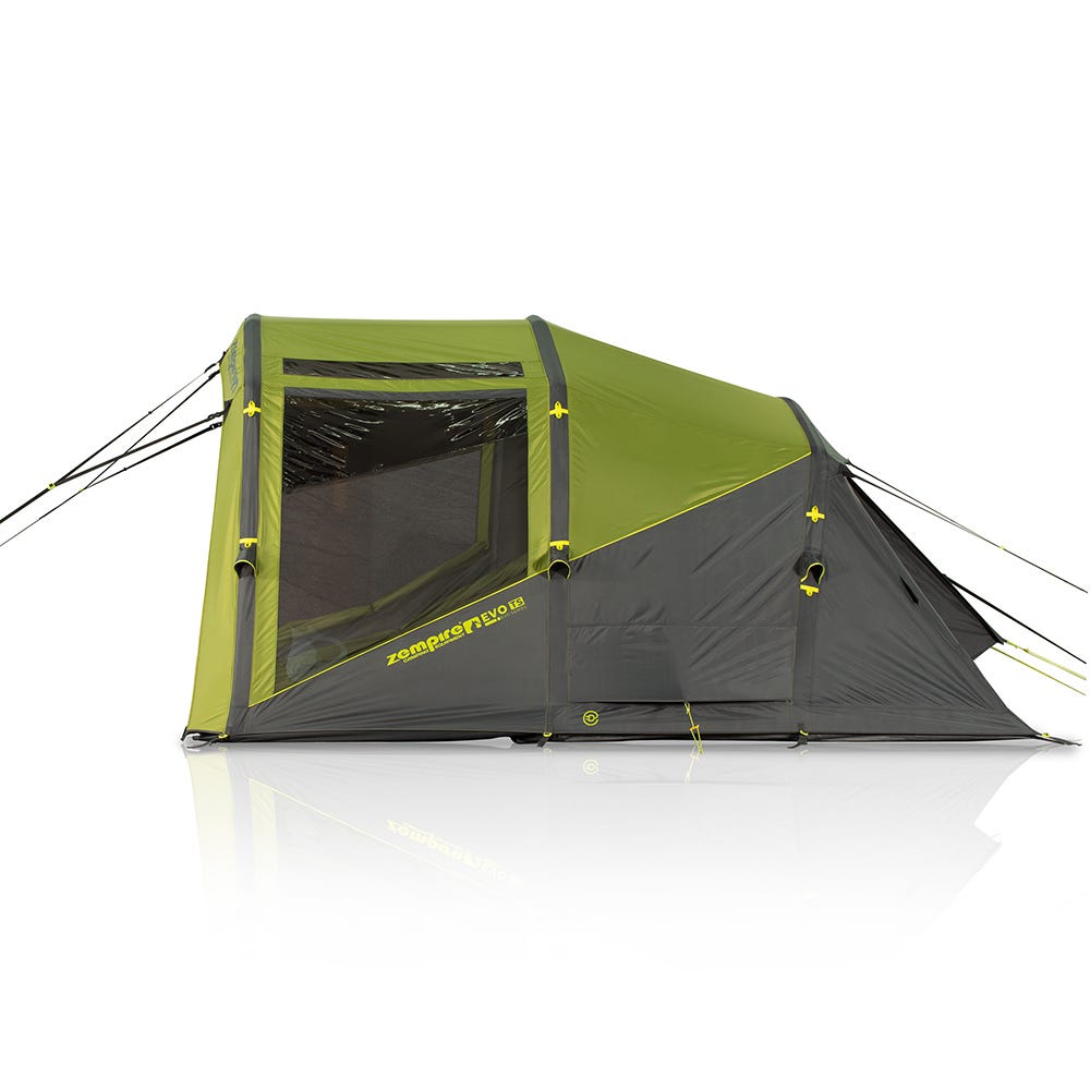 The Zempire Evo TS Tent comes with the emergency repair kit and the double action pump, making any repairs a breeze and setting up fast and easy. The tent also is compatible with the Evo TM/TS wall set for more cover or Aerobase Evo Links to add even more space for undercover living.