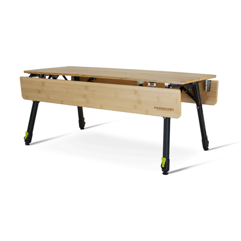 New this season, our Kitpac Pro Standard Camping Table is built with a new aluminium frame, making for an even sturdier table with minimal movement. The natural bamboo tabletop is much thicker than previous models but just as smooth and heat resistant. New slide-out brace plates make setup and packing away much easier, while also enabling a drop-down panel option to change the tabletop size to use in tight spaces. The table height can be adjusted and locked in with the flick of a lever on the individual legs. The Kitpac Pro Large is super compact and folds down to fit into a durable carry bag for seamless transport and use away from the campsite. Rest assured, the Kitpac Pro Large features our renowned built-in bottle opener so no need to pack any.