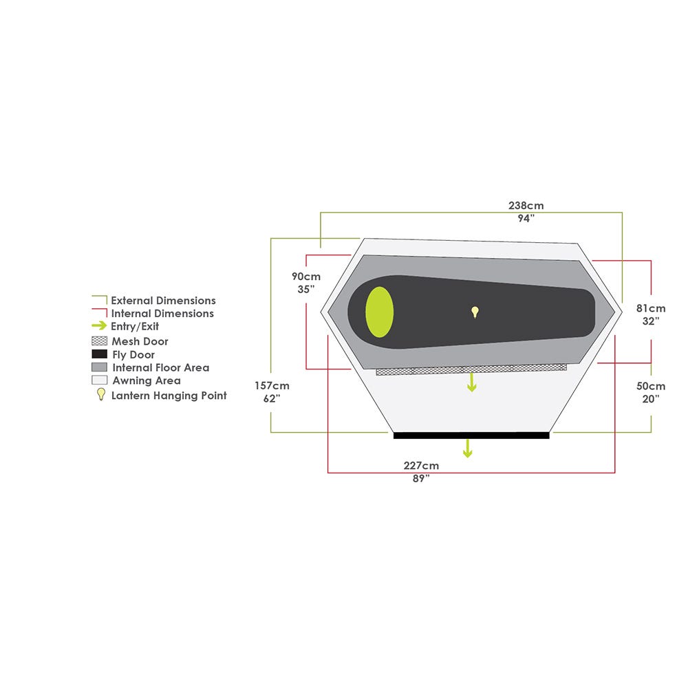 With a RipStop Fly and Polyoxford Flooring you know you can rely on the Mono Hiking Tent to perform throughout your entire trip. The lightweight and tough design don't compromise on space - the simple single-pole design provides good headroom that allows you to sit up and move.