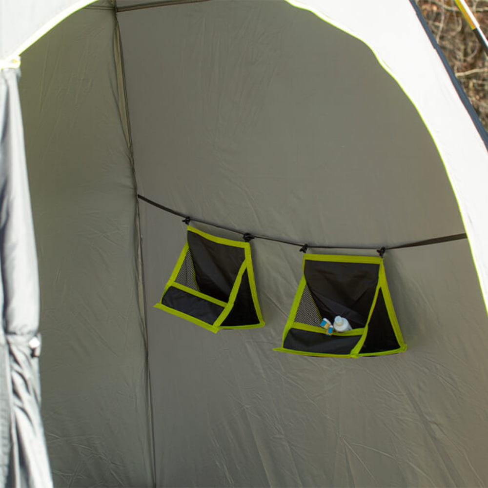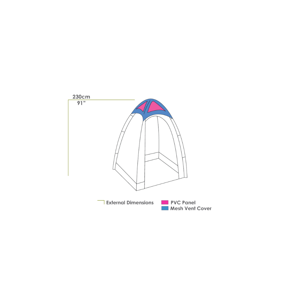 Constructed from silver-coated fabric, this tent eliminates light transfer and shadows, ensuring complete privacy while in use. A built-in busy sign lets others know when it's occupied, while a waterproof towel curtain and hanging toiletry shelves keep your essentials dry and organised.
