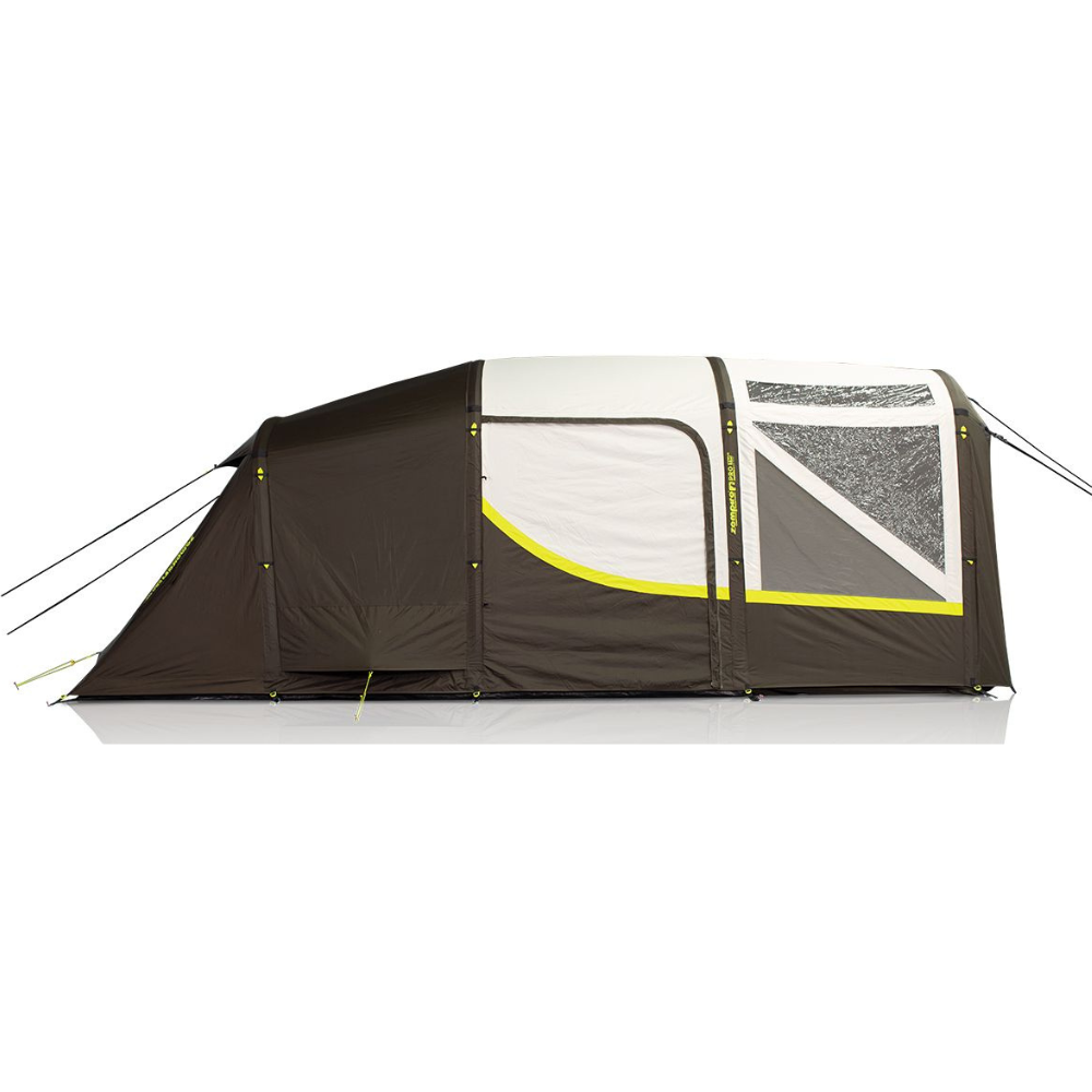 The Pro TM V2 is packed with all the features from the superior Pro Series range including Zempire's highest waterproof rating, most durable polyester materials and a 4-year warranty. Perfect for couples or small families who appreciate all the bells and whistles! The Pro TM V2 inflates in less than 2 minutes and the single-point inflation and central ridge pole provide increased simplicity and wind stability. The darkened bedroom pod accommodates sleep-ins and can be configured to either 1 or 2 bedrooms. With its full head height, spacious living area and 2 side access doors, the new Pro TM V2 offers ultimate comfort and ease of use. The front awning can be effortlessly connected to an optional awning wall set or to a Zempire Roadiebase or Aerobase Shelter via link.