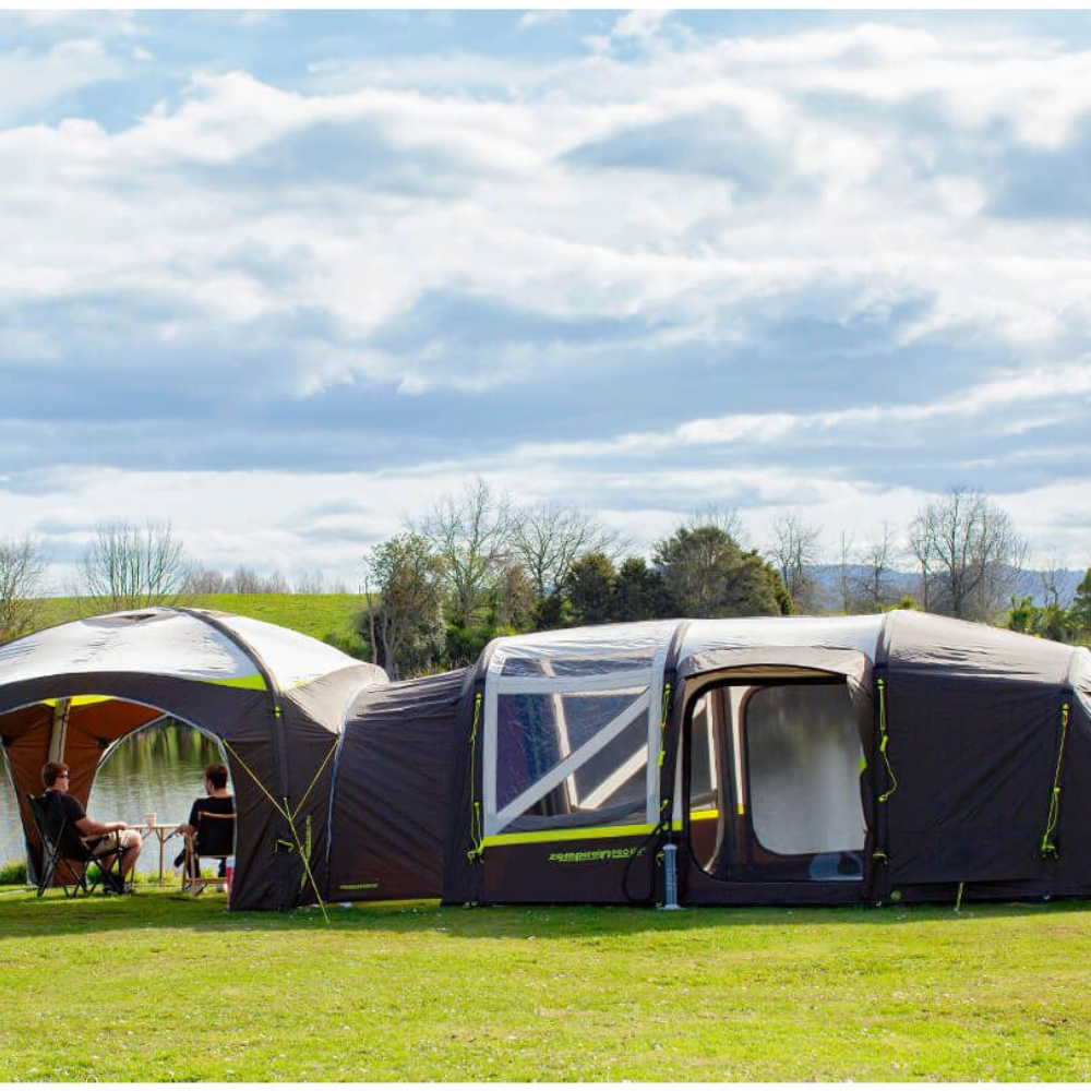 An Evo Link M connects your Aerobase 3 or 3 Pro shelter to your Evo TM, Evo TM V2 or TS tent to extend your covered outdoor living space. Ideal for kitchens, lounging space, or a dining table. The waterproof connection ensures that you will stay dry, no matter the weather. It is possible to connect up to 4 tents to a single shelter to create a "tent-city" with a central gathering area for friends and family.